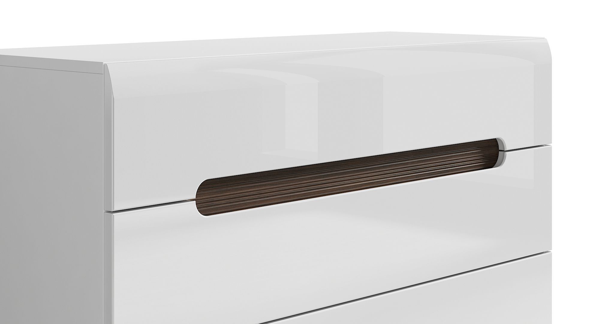 для открывания 1 и 2 ящика используется фрезеровка на панели ящиков, которая декорирована с внутренней стороны рифленой планкой из плиты МДФ цвет Дуб венге Магия