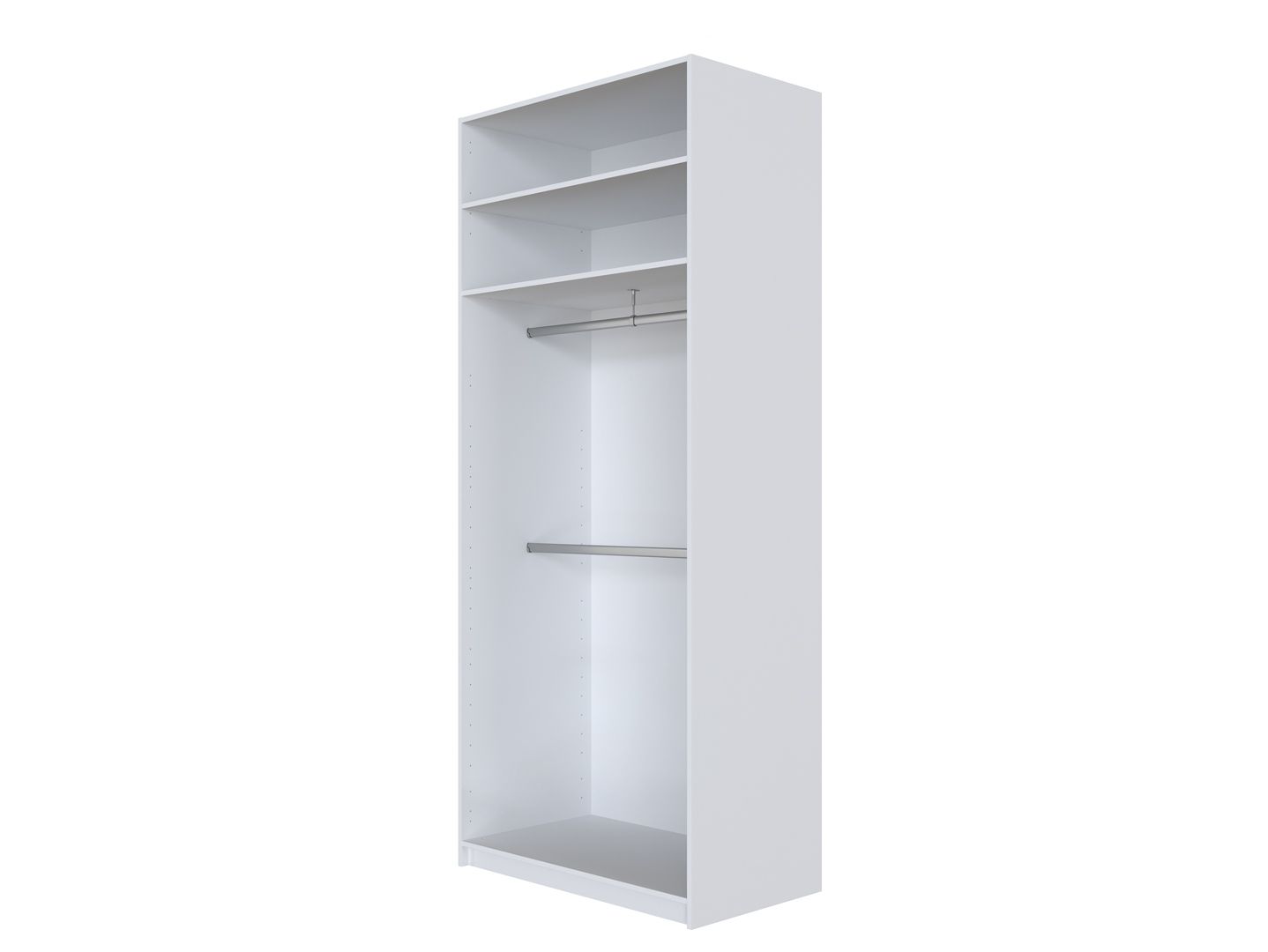 внутри расположены выдвижная металлическая штанга для одежды и 3 ячейки для хранения