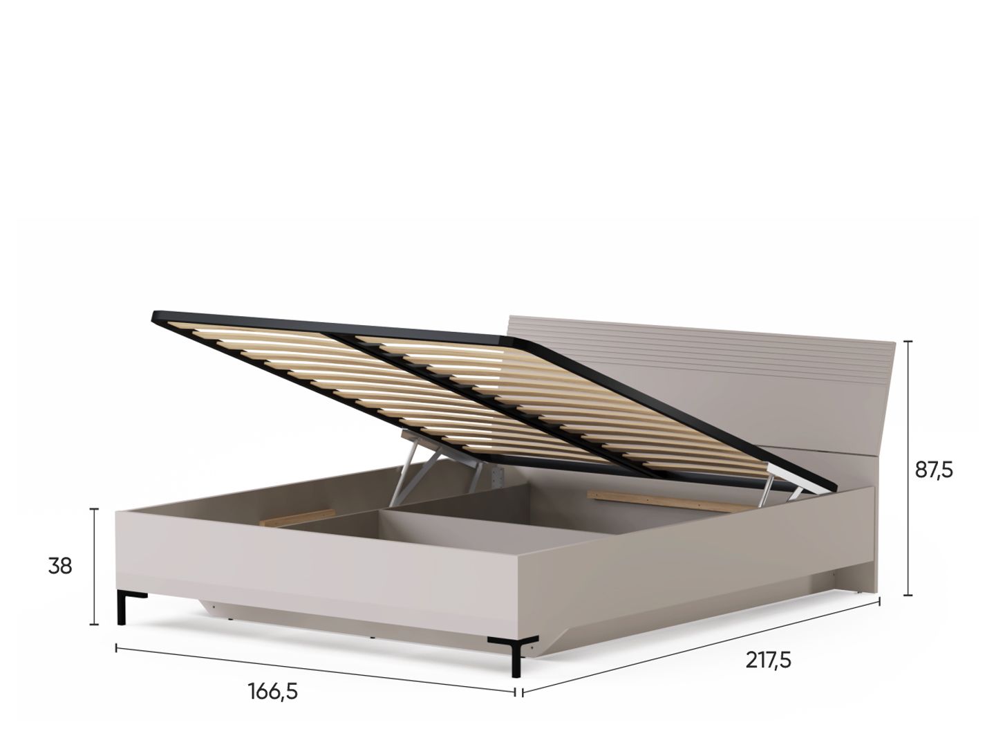 В нижней части кровати, по обе стороны, расположены полки для хранения вещей: книг, элементов декора и т.д.;