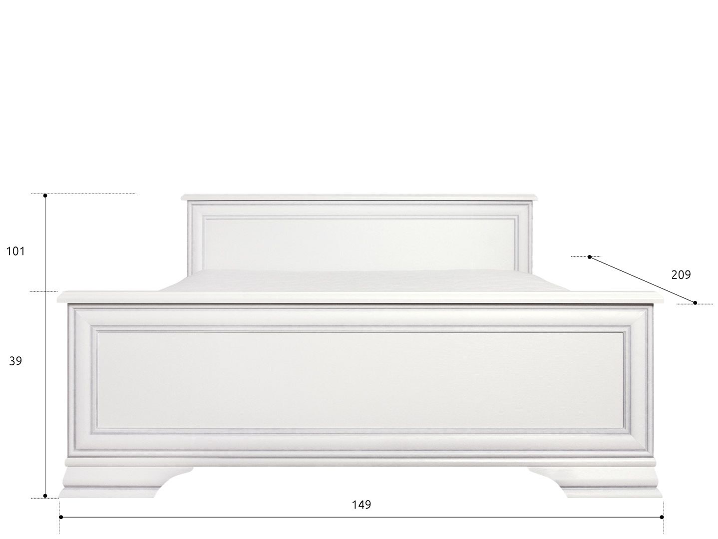Спинки кровати декорированы планкой с серебристой патиной из МДФ;