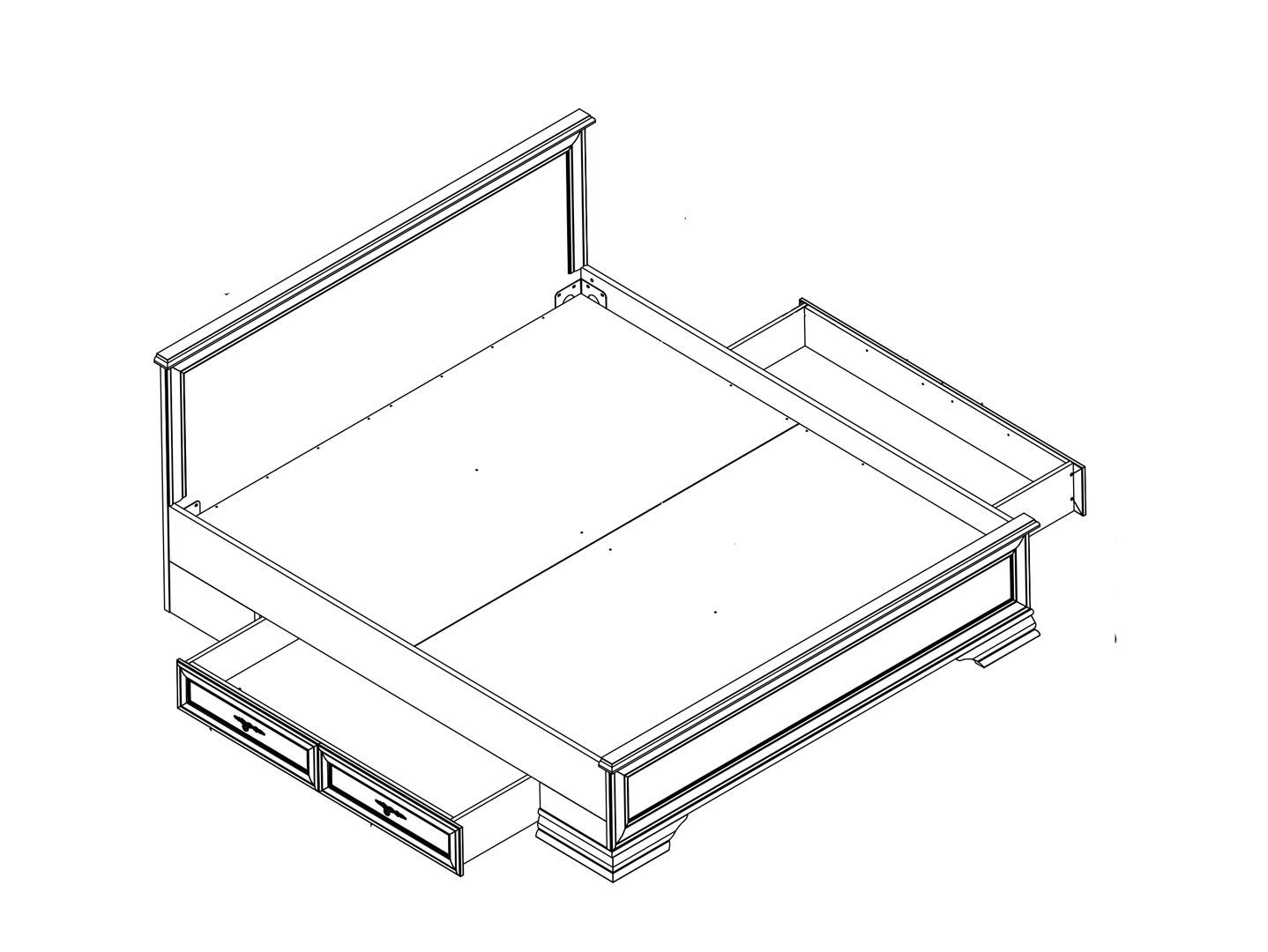 в нижней части кровати по обе стороны расположено 2 выдвижных ящика;