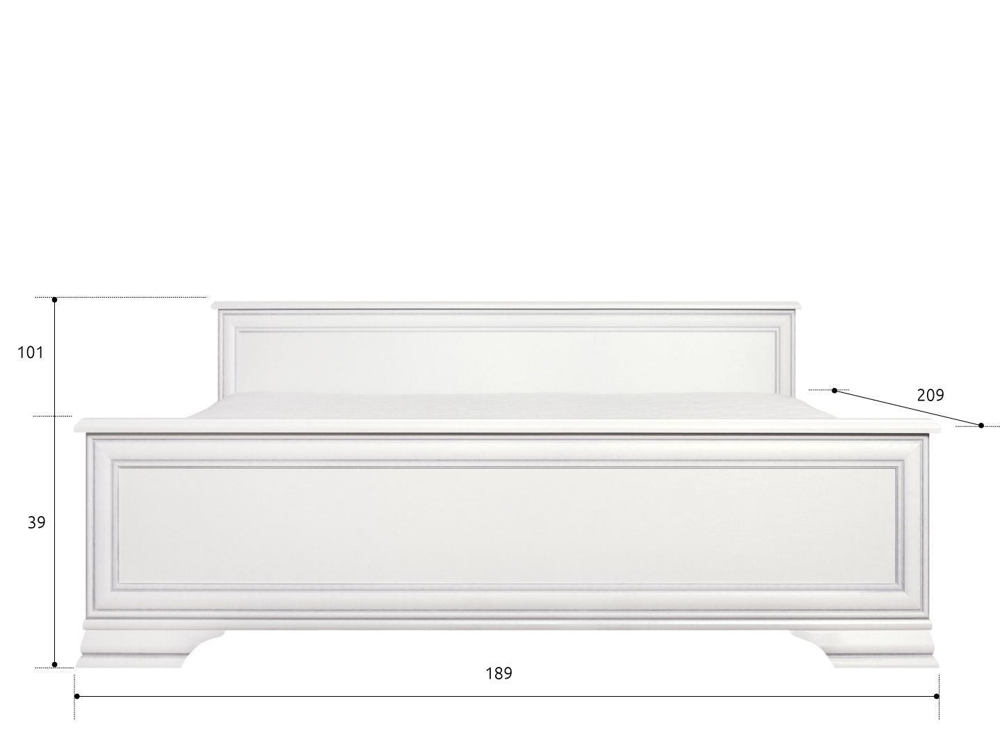 спинки кровати декорированы планкой с серебристой патиной из МДФ;