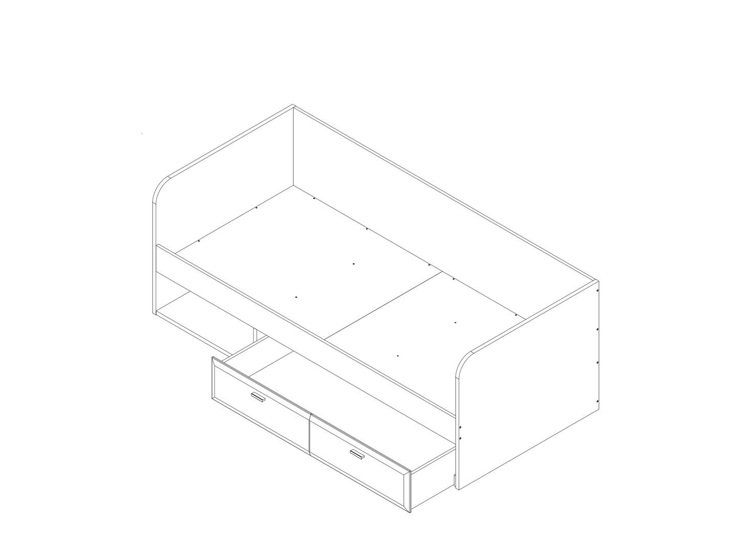 внизу расположены открытая полка для хранения и ящик для постельных принадлежностей