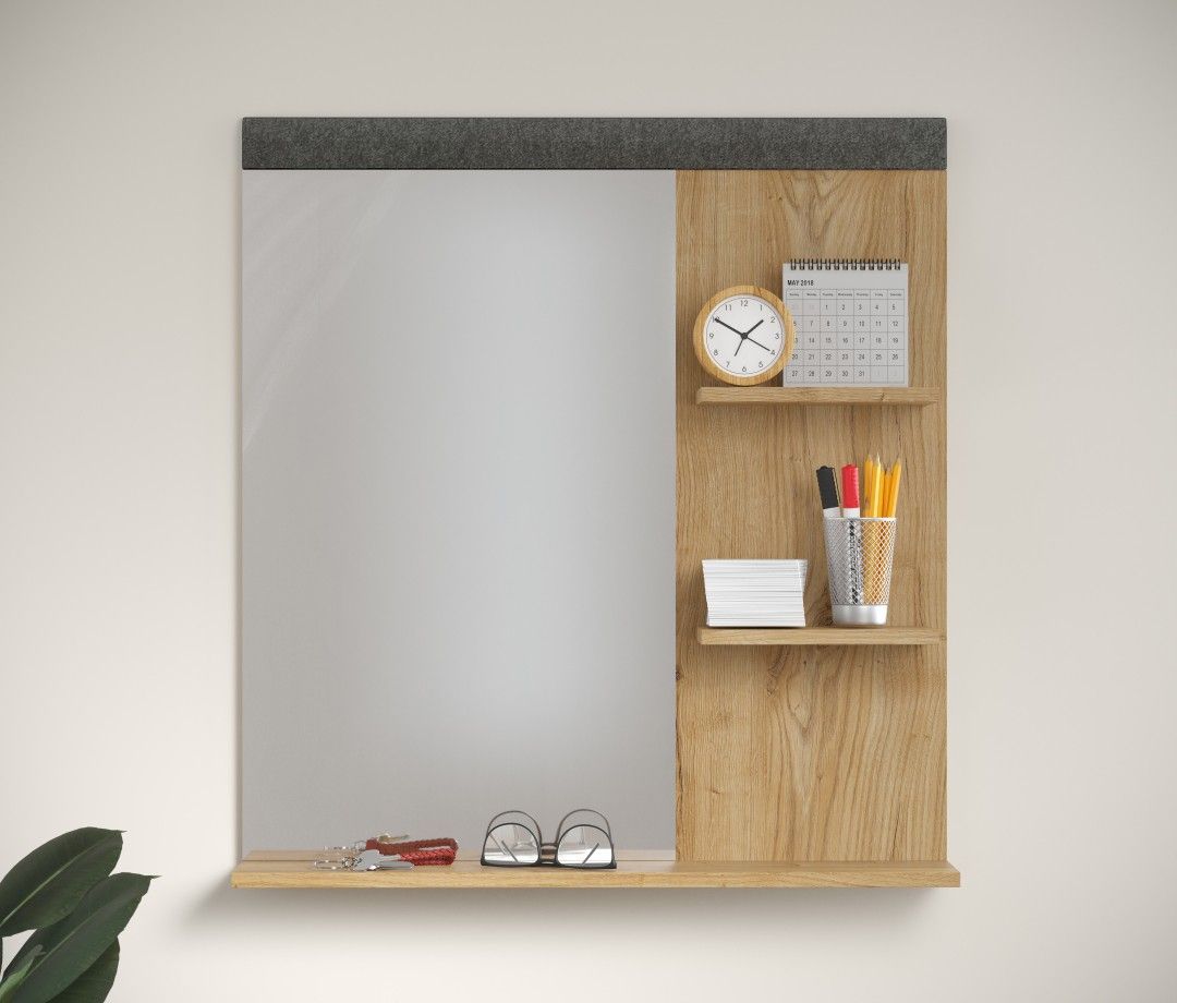 Полка настенная с зеркалом GRACE Дуб наварра/Графит LUS 80