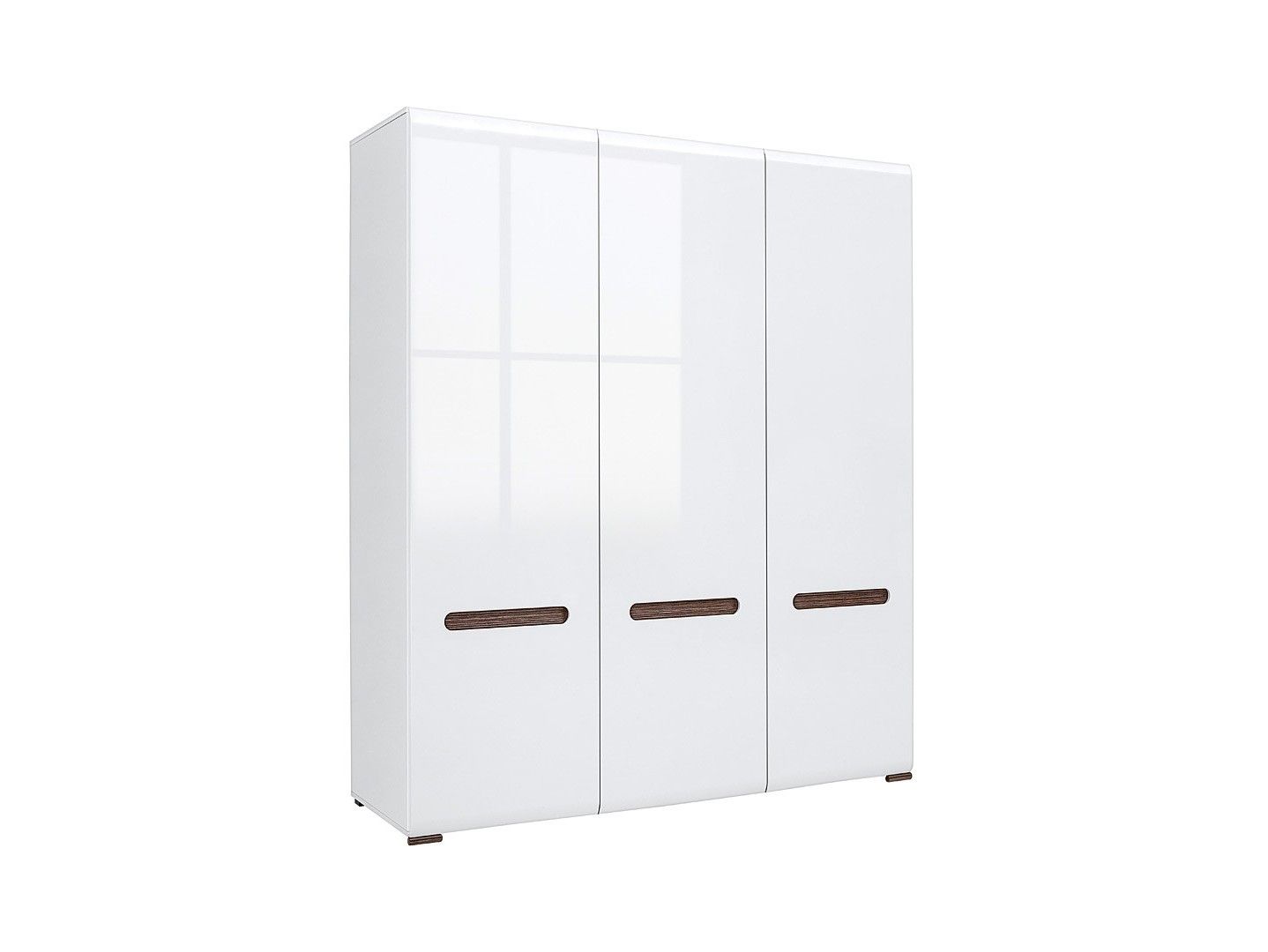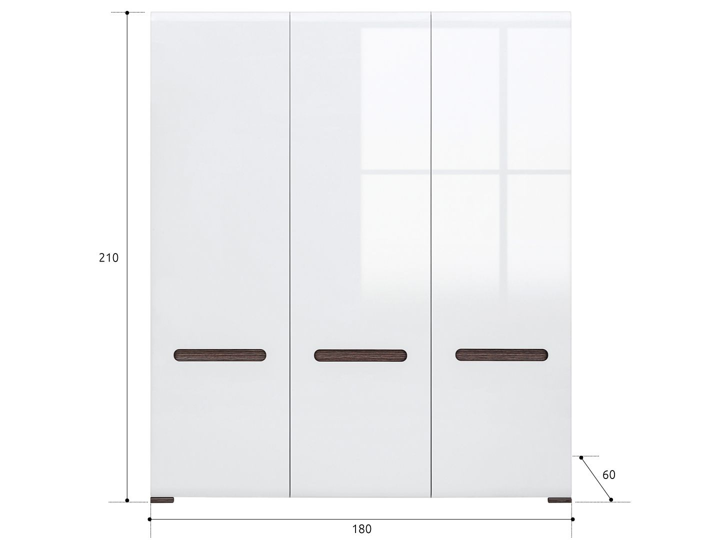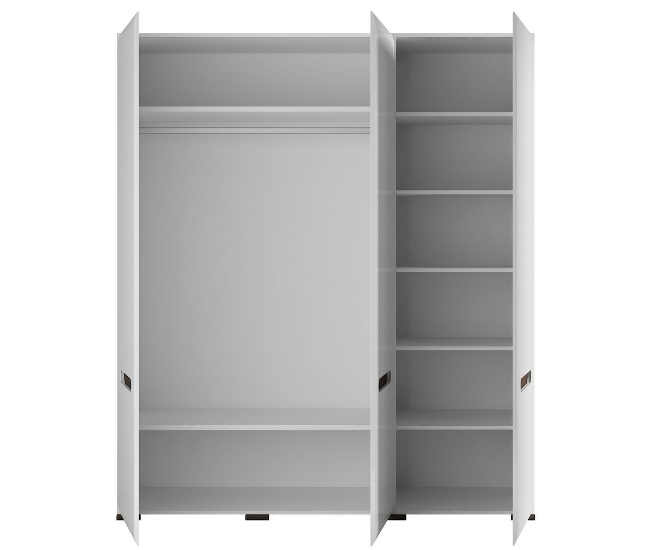 распашные глухие двери, за левой и средней – в верхней части расположена 1 ниша и штанга стационарная металлическая для одежды, в нижней части расположена 1 ниша, за правой расположены 5 полок