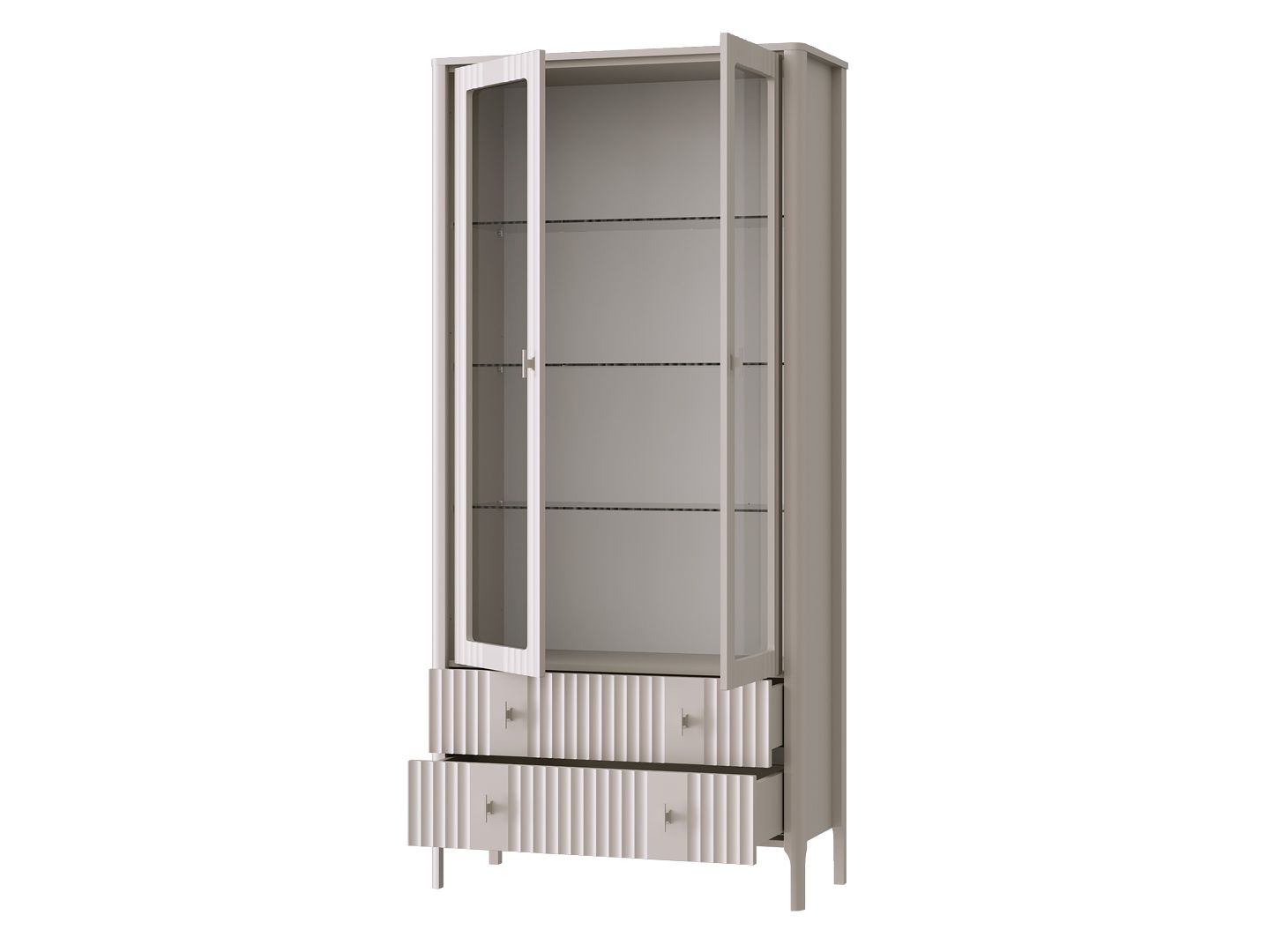 2 распашных двери со стеклянной вставкой и 2 выдвижных ящика на направляющих скрытого монтажа частичного выдвижения плавного закрывания с рифлеными фасадами из МДФ