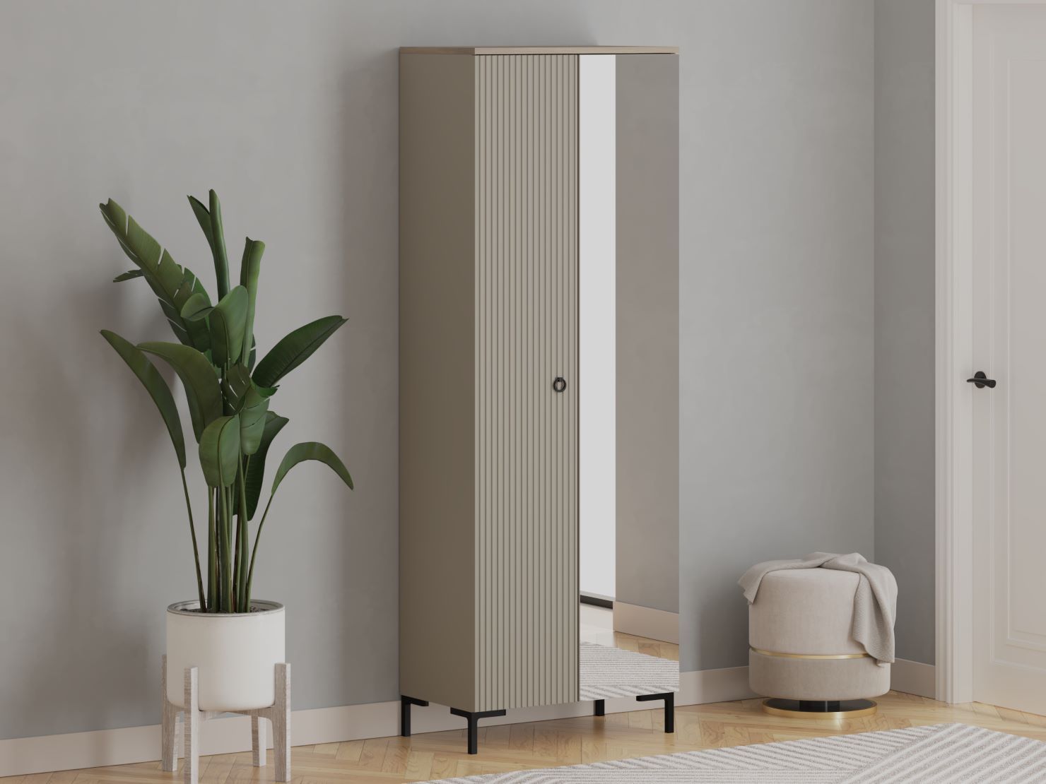 рифленая дверь и дверь с зеркальной вставкой могут устанавливаться как с правой стороны, так и с левой