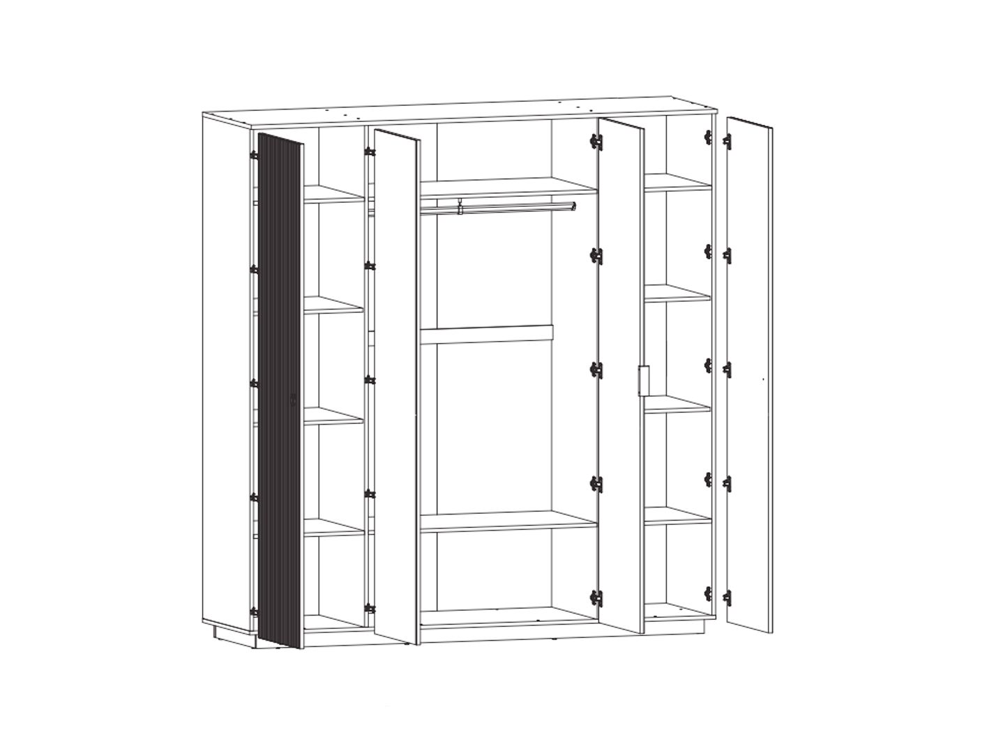 в правой и левой части шкафа — рифленые двери, за которыми расположены 5 отделений для хранения