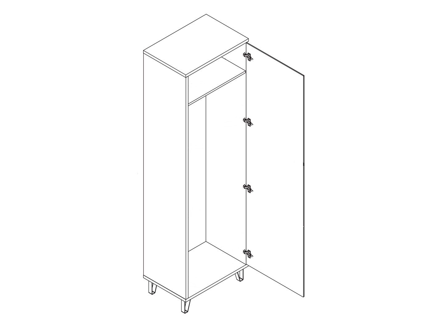 за распашной дверью расположена выдвижная штанга для одежды и полка