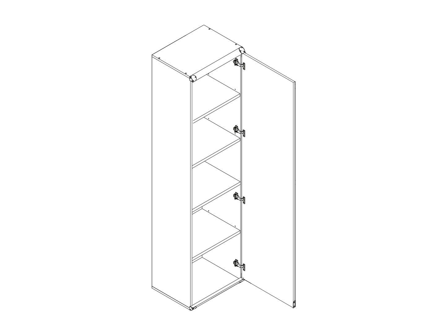 1 распашная глухая дверь, за которой расположены 4 полки из ДСП