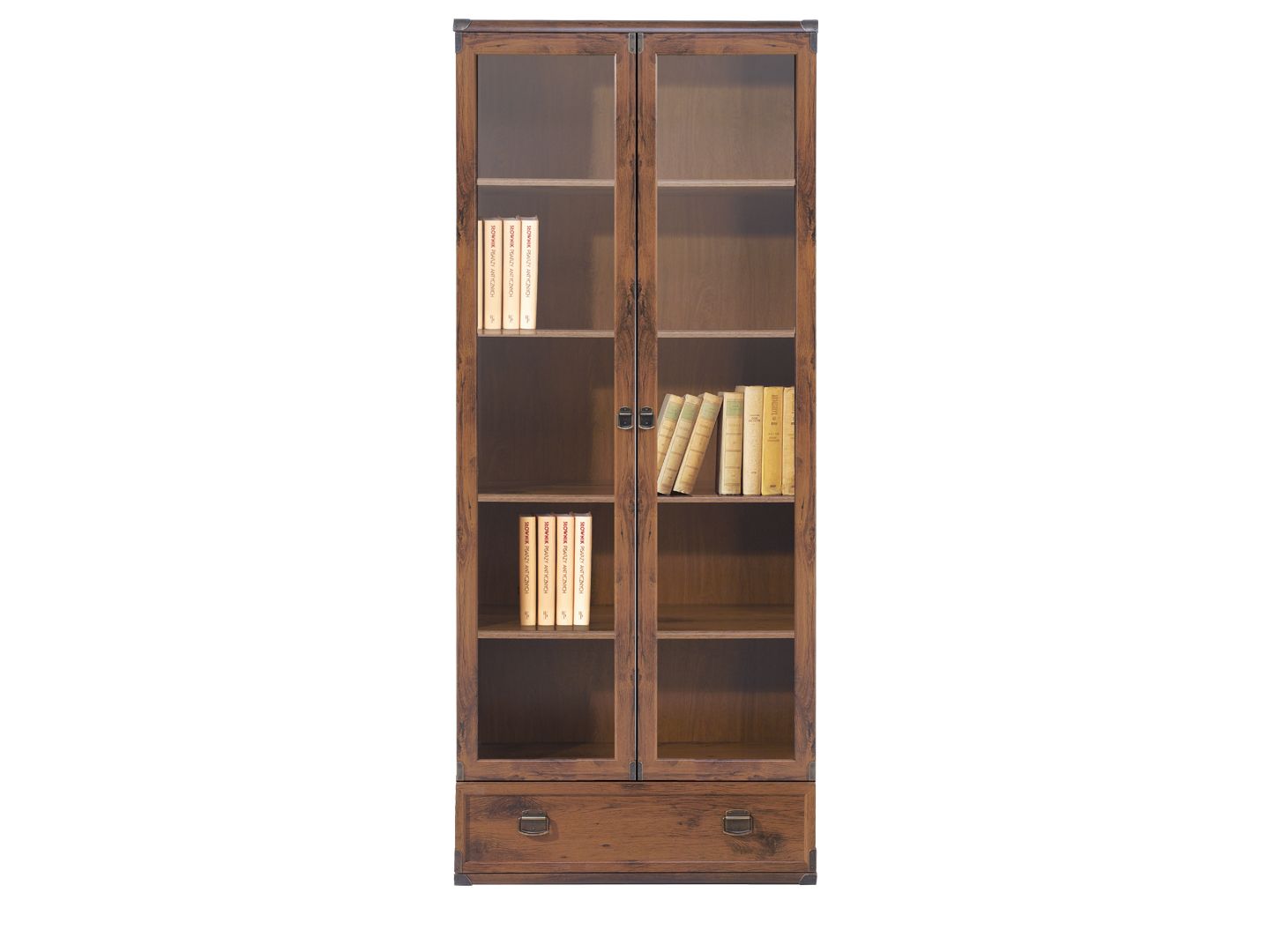 2 распашные двери со стеклянными вставками, за которыми расположены 4 полки из ДСП