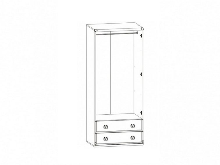 шкаф разделен на 2 отделения: верхнее – отделение с распашными дверями, за которыми расположена стационарная штанга для одежды, нижнее – 2 выдвижных ящика на металлических роликовых направляющих