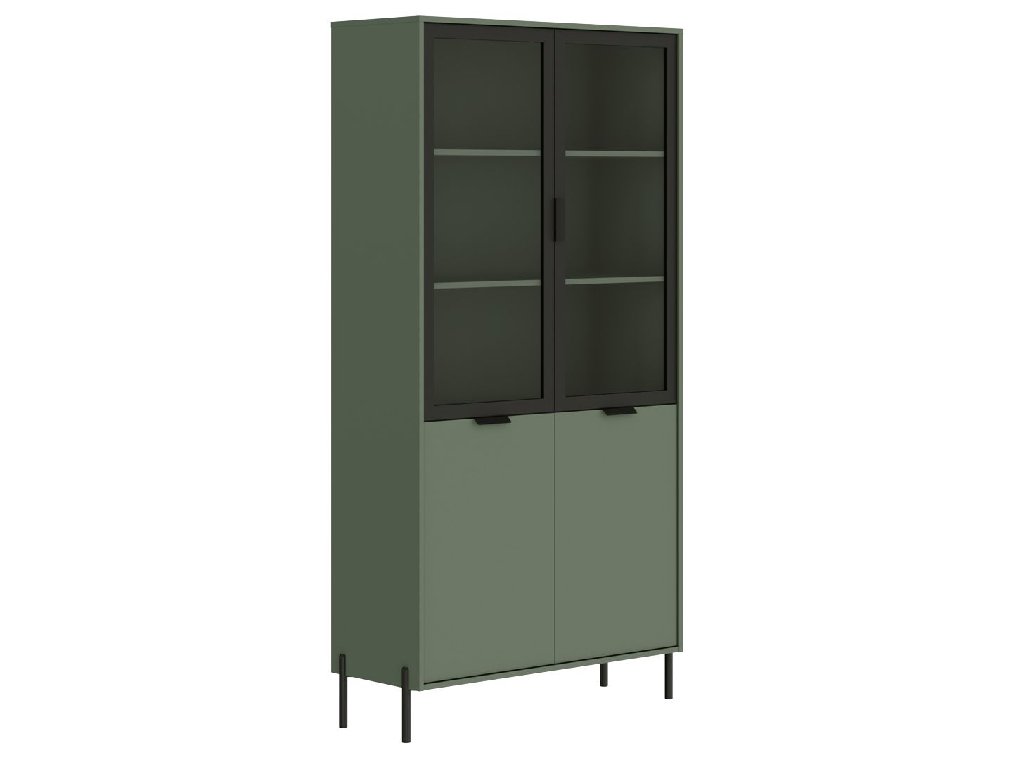 шкаф разделен на 2 отделения с полками за распашными глухими дверями