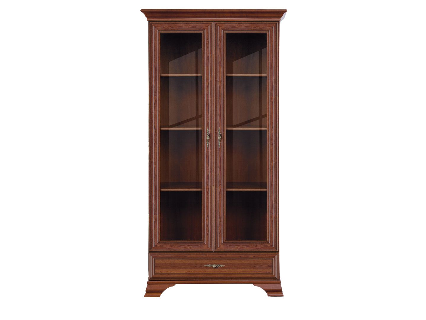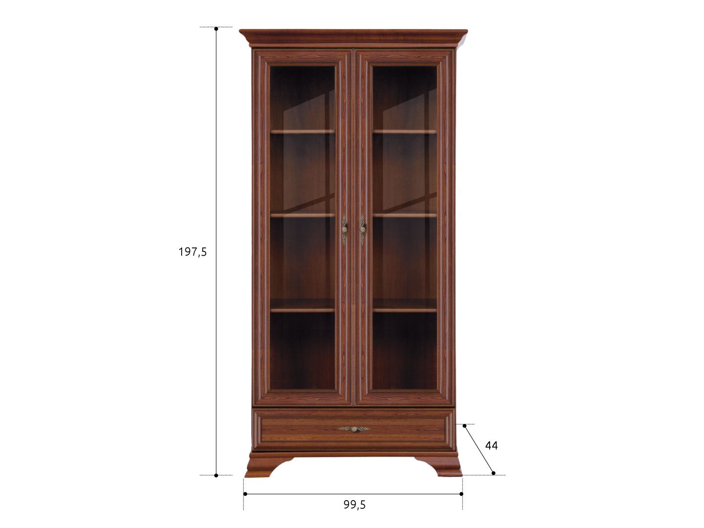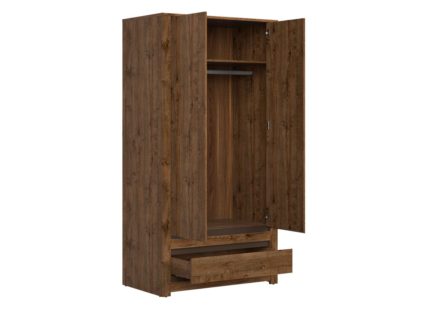 за распашными дверьми расположено отделение с полкой и отделение с металлической штангой для одежды