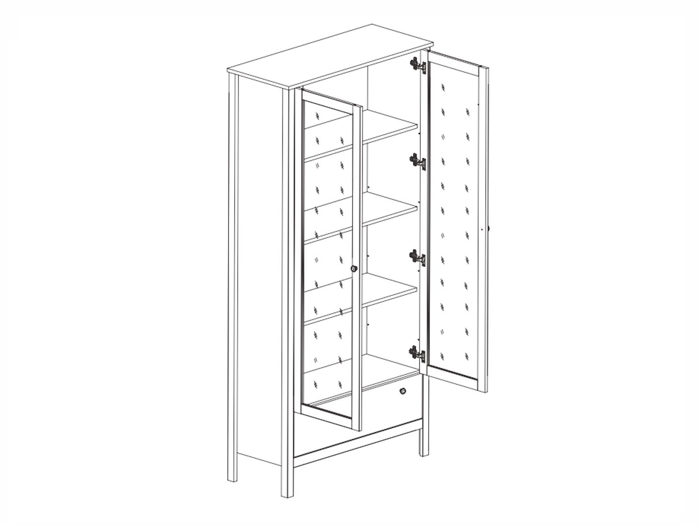 за распашными дверями со стеклянными вставками расположены 4 полки