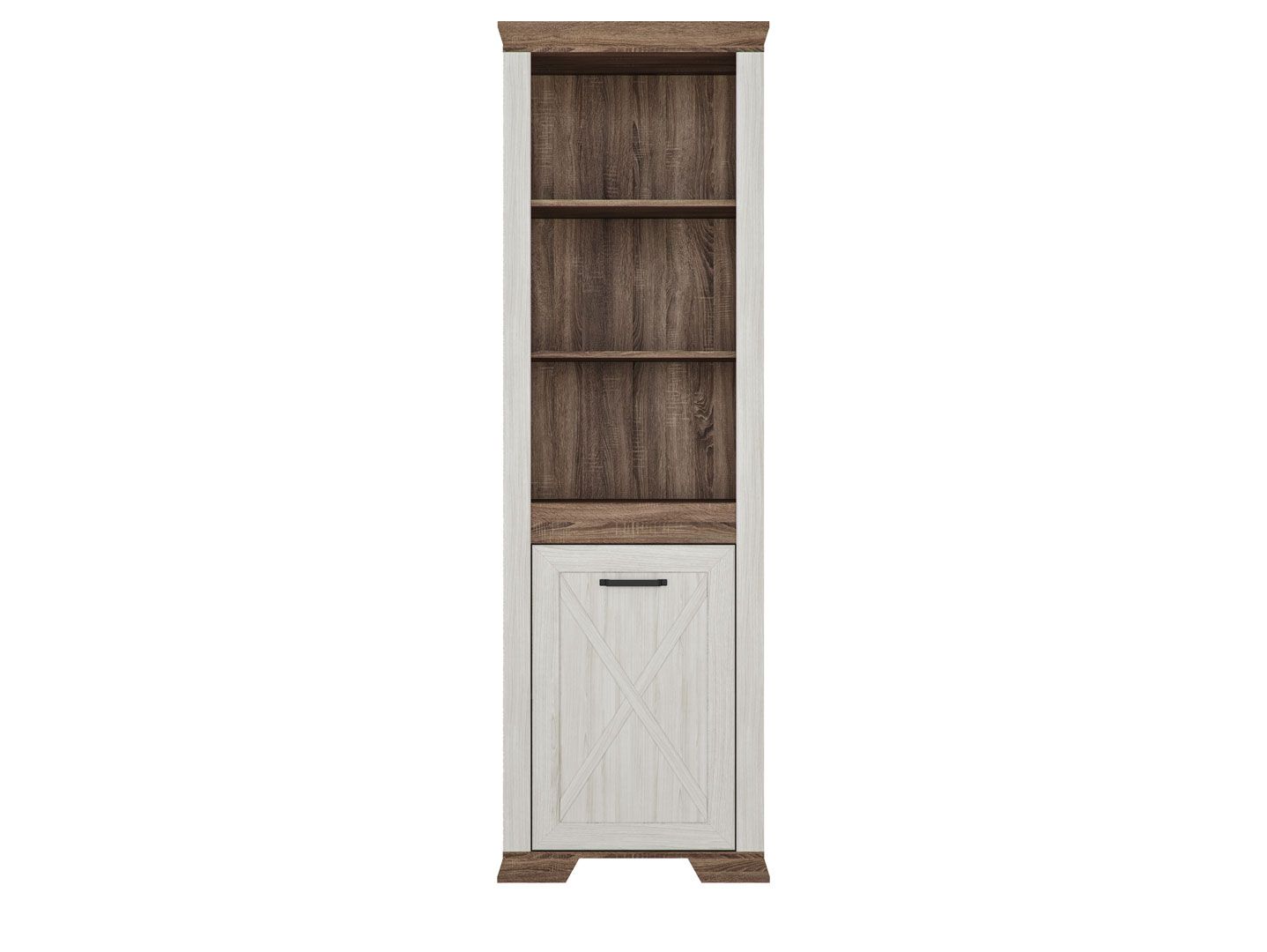 шкаф разделен на 2 отделения: 3 вместительных открытых ниши и отделение с полками за распашной глухой дверью