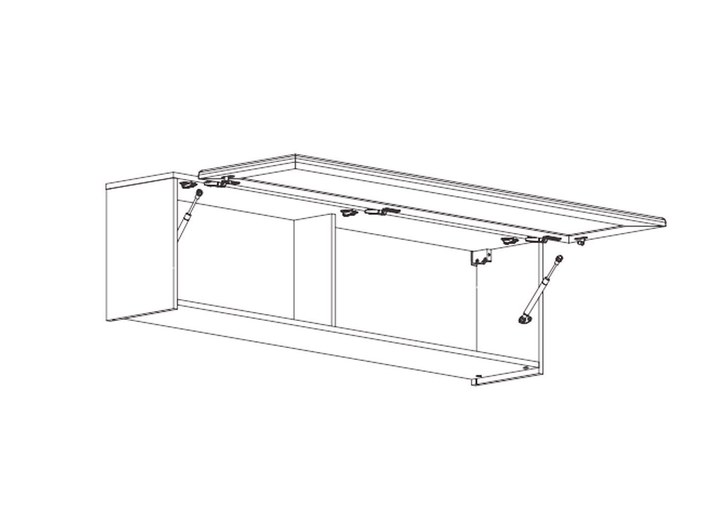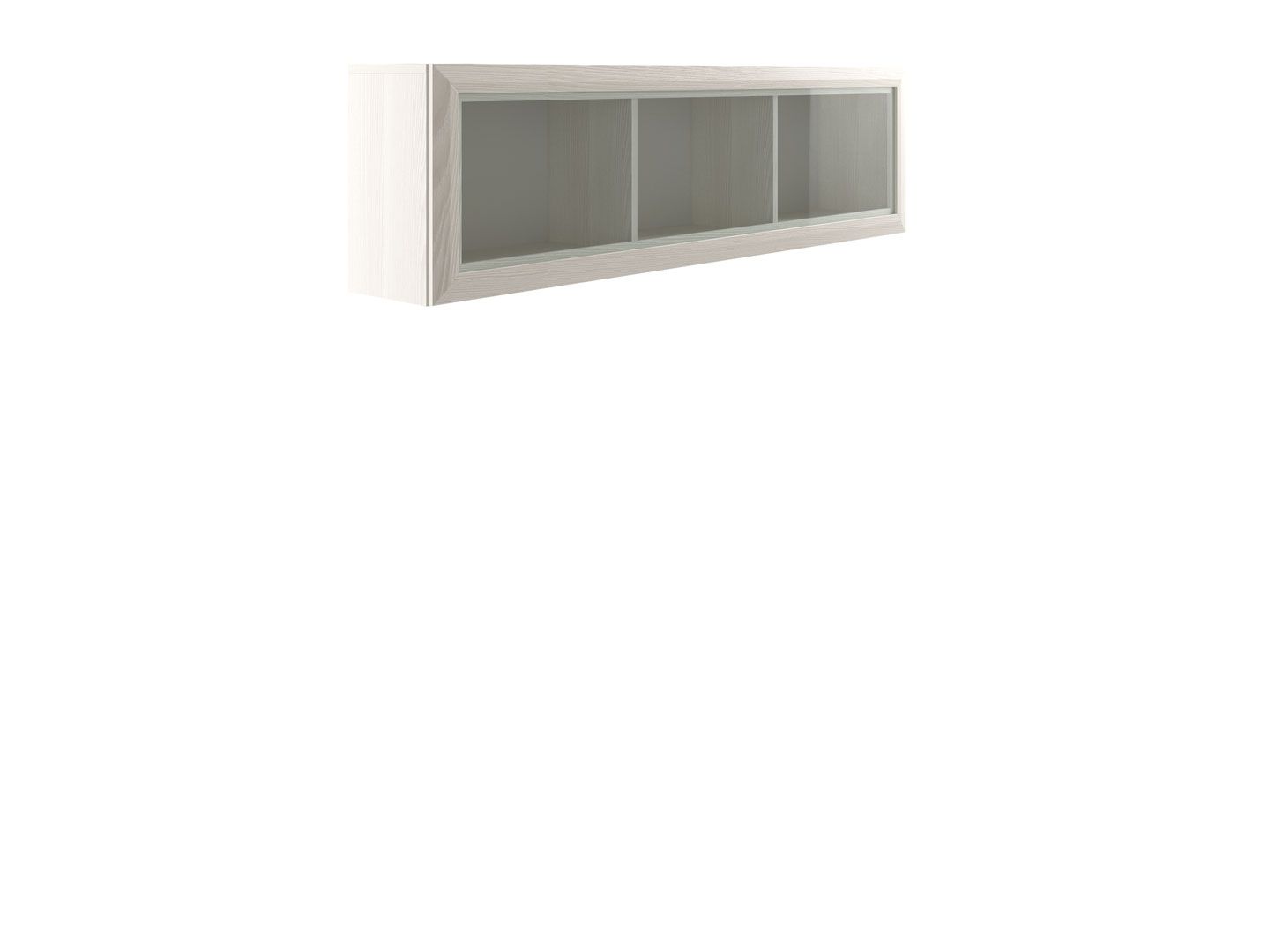 навесной шкаф состоит из одного отделения с перегородками за откидной дверью со стеклянной вставкой