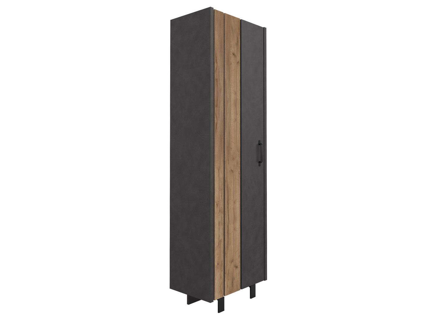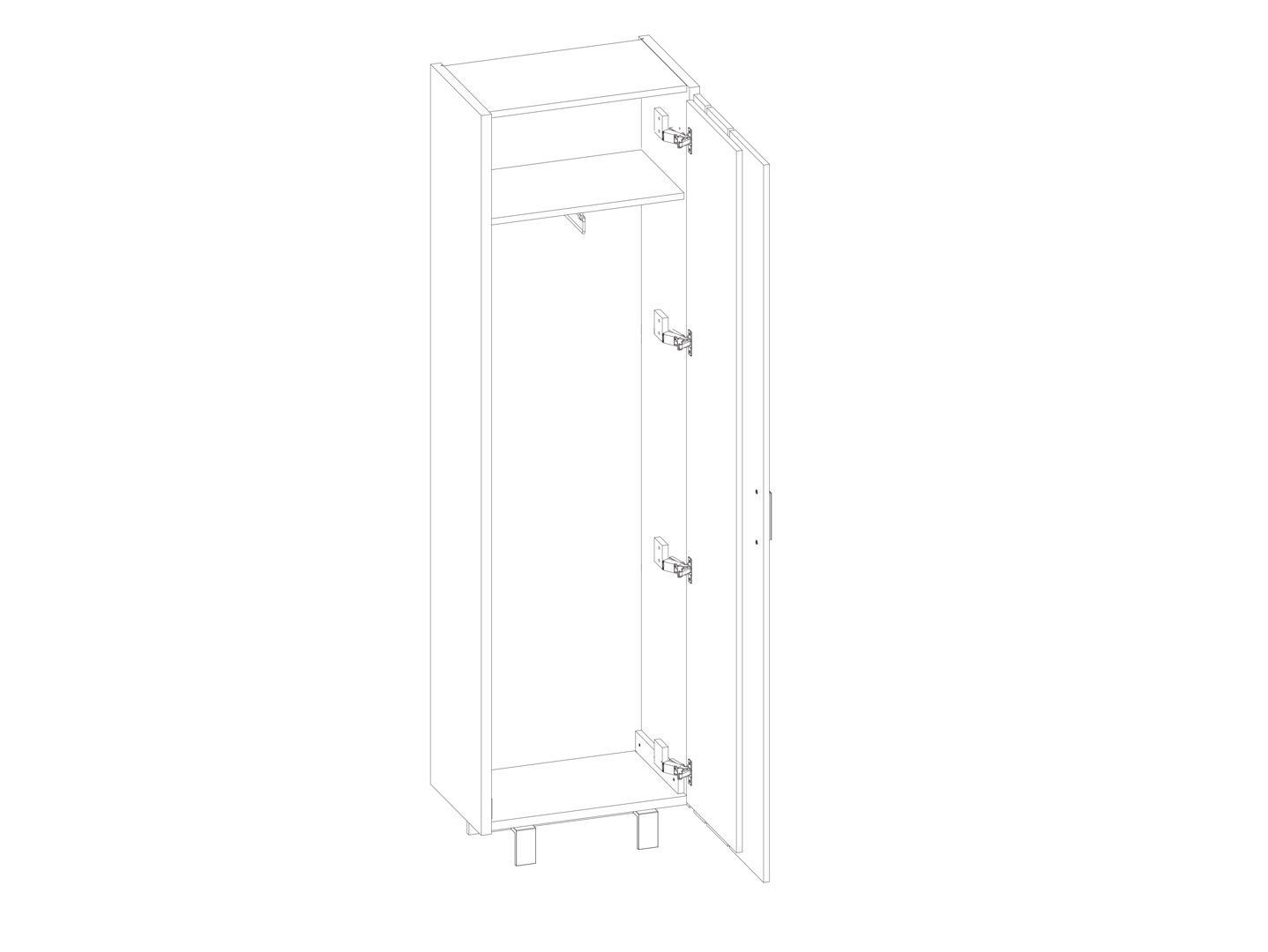 за глухой распашной дверью расположена выдвижная металлическая штанга для одежды и полка