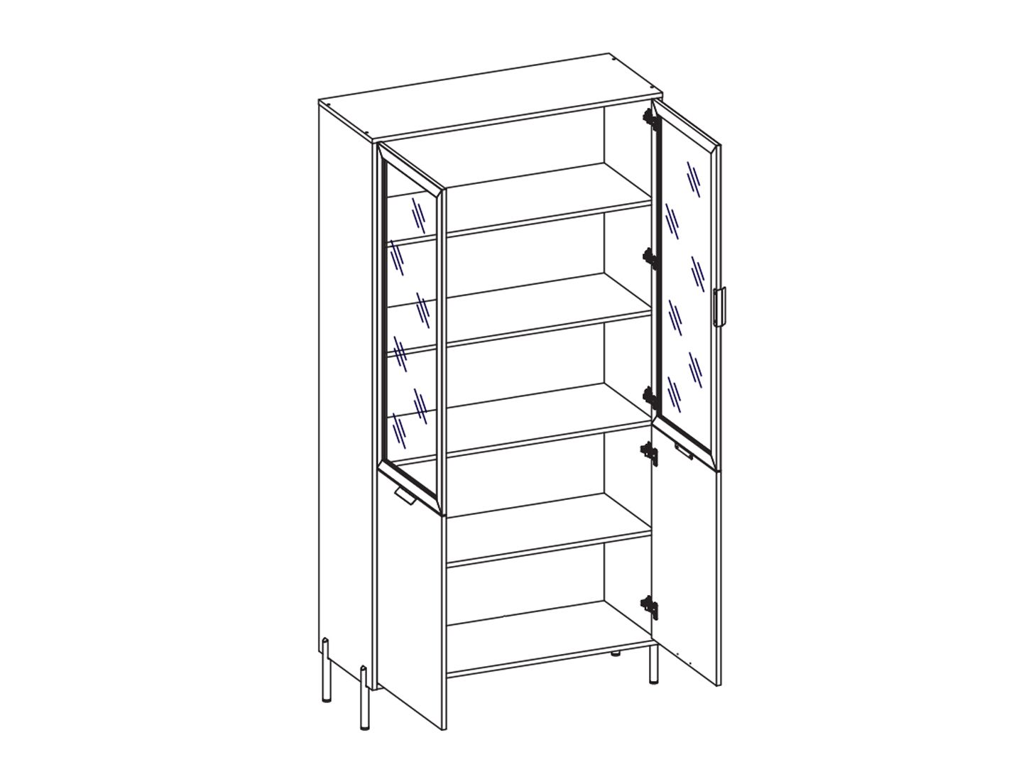 за распашной дверью со стеклянной вставкой расположено 5 отделений для хранения