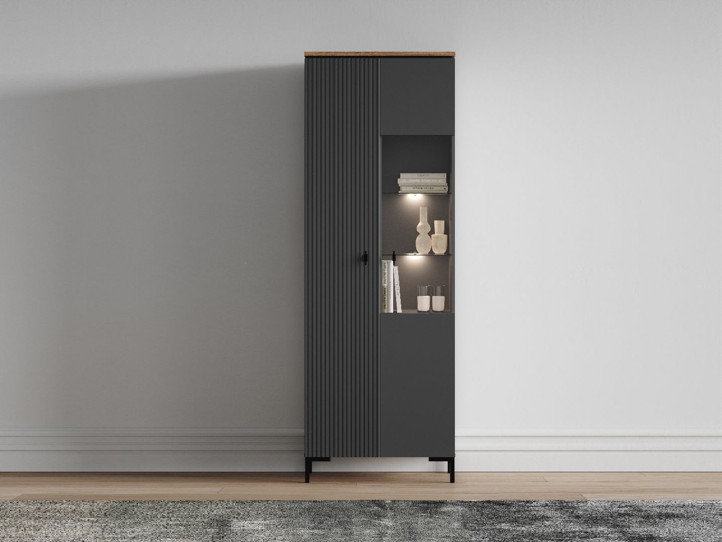 Шкаф с подсветкой SAN GIMIGNANO Дуб Нокс/Антрацитовый REG1D1W