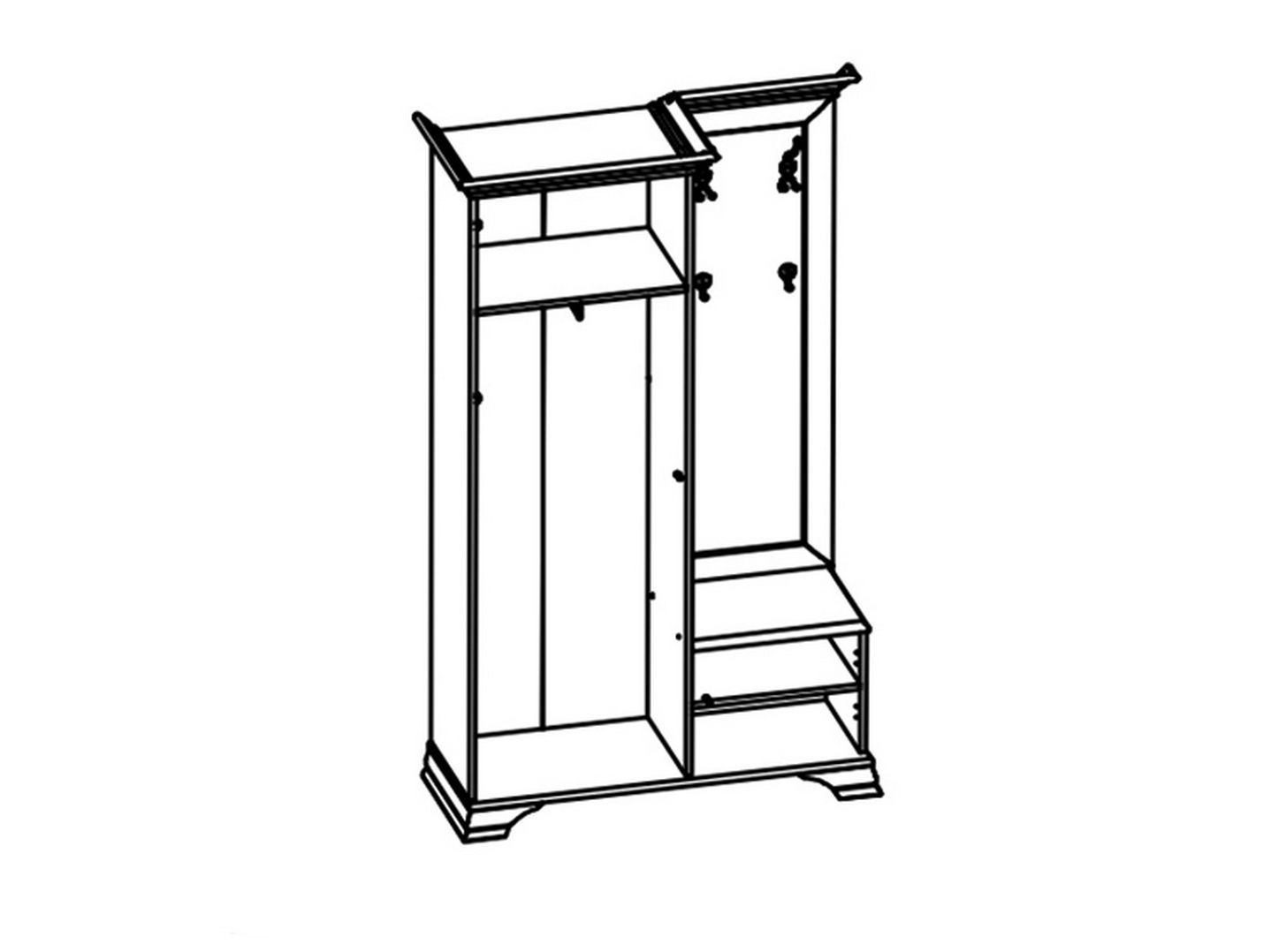 за дверью с зеркальной вставкой расположена 1 полка и выдвижная штанга для одежды