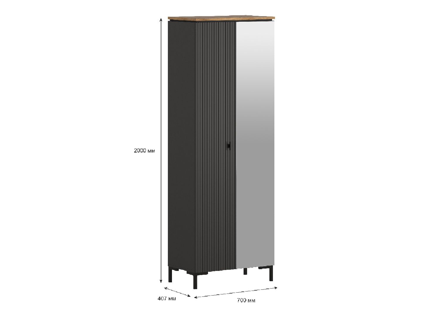 рифленая дверь и дверь с зеркальной вставкой могут устанавливаться как с правой стороны, так и с левой