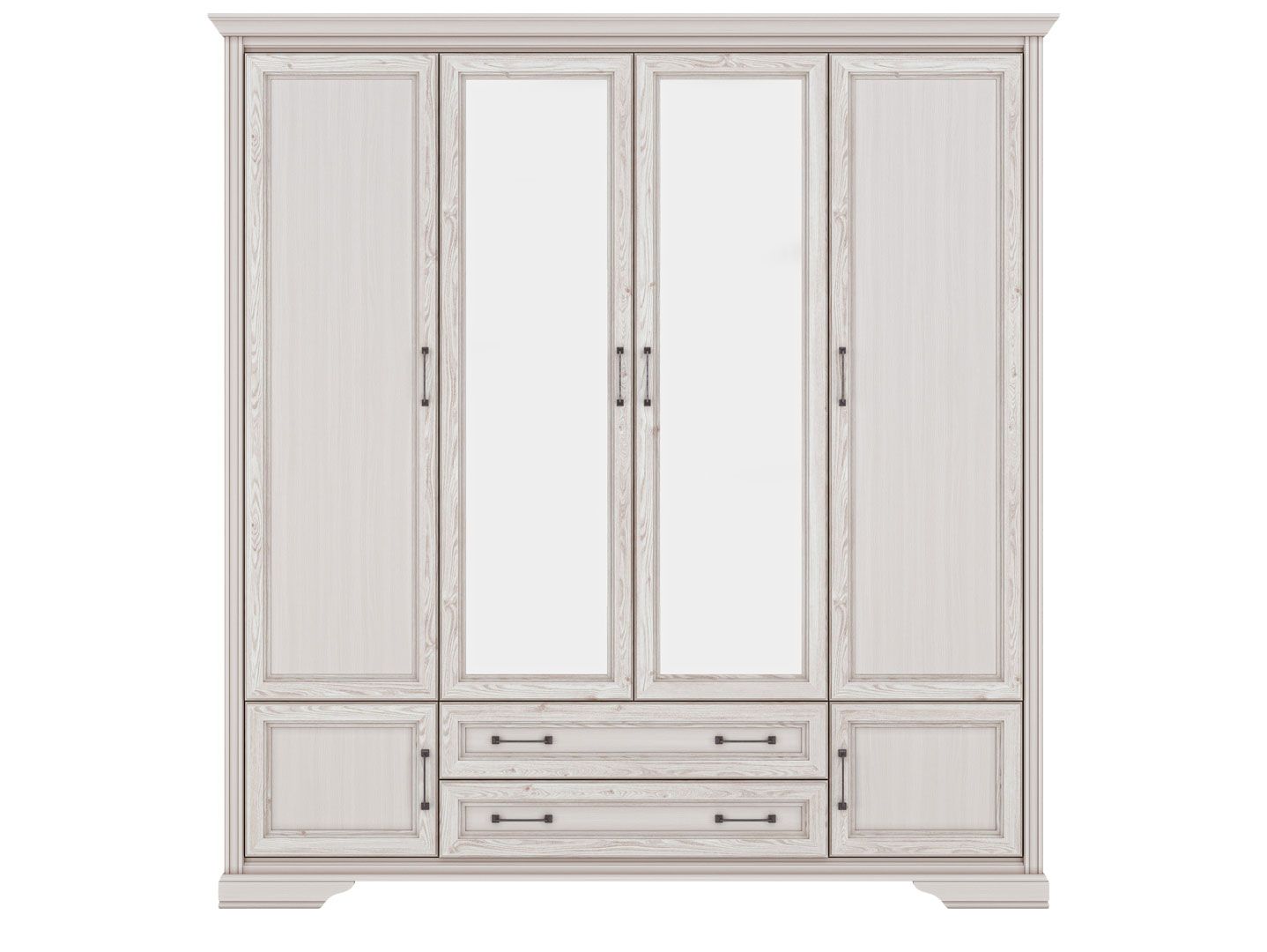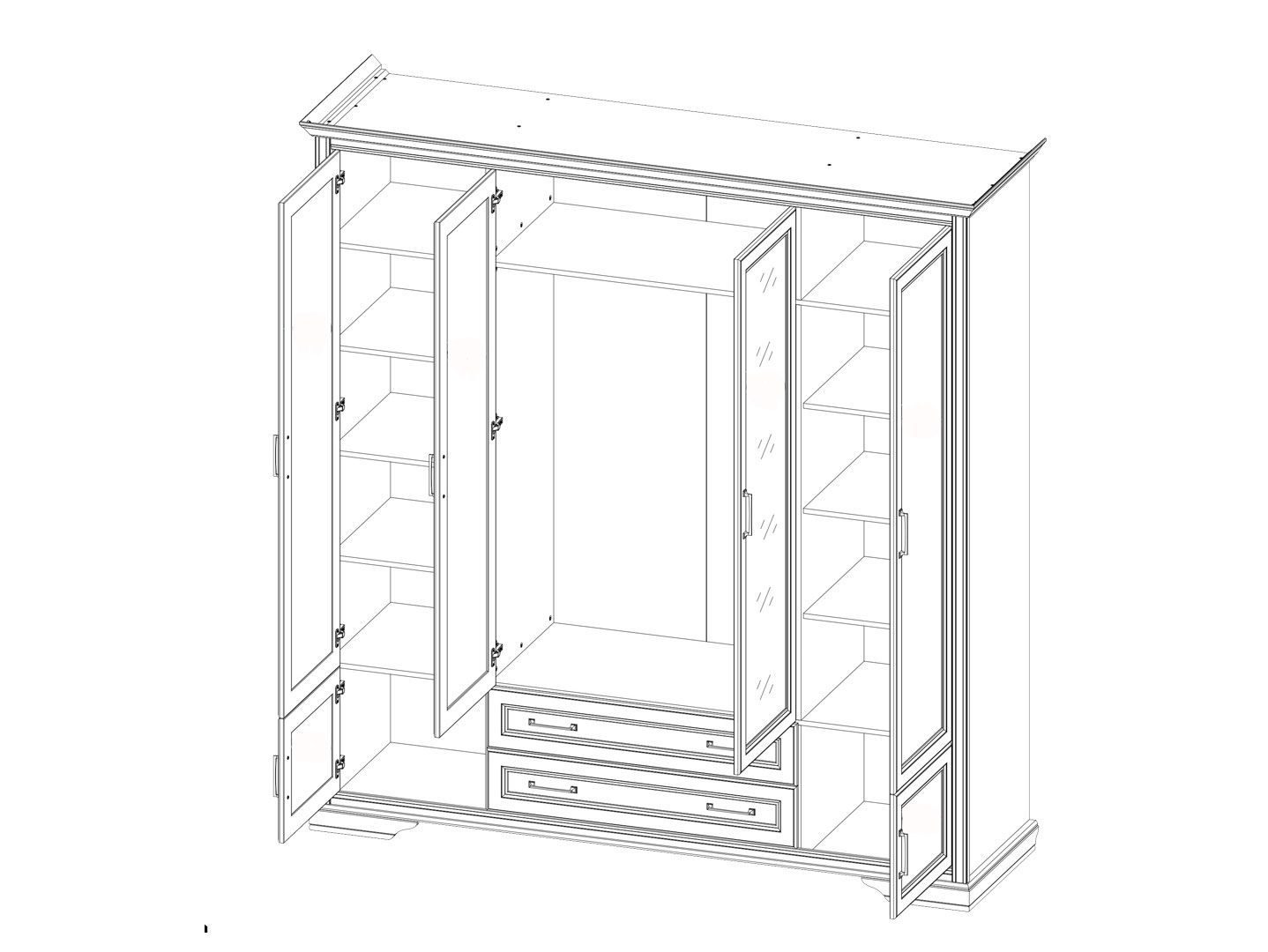 в нижней части шкафа расположены 2 ящика с распашными дверями и 2 выдвижных ящика на шариковых направляющих