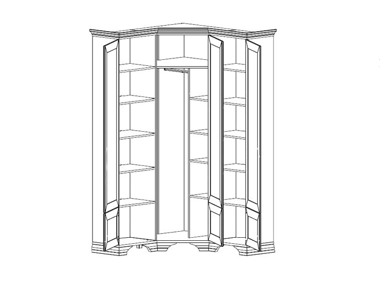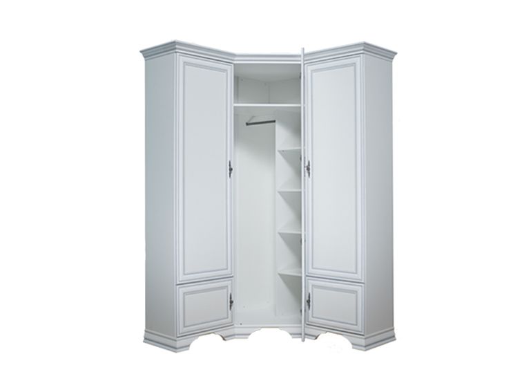 за распашными глухими дверями расположена штанга для одежды и вместительные ниши для хранения