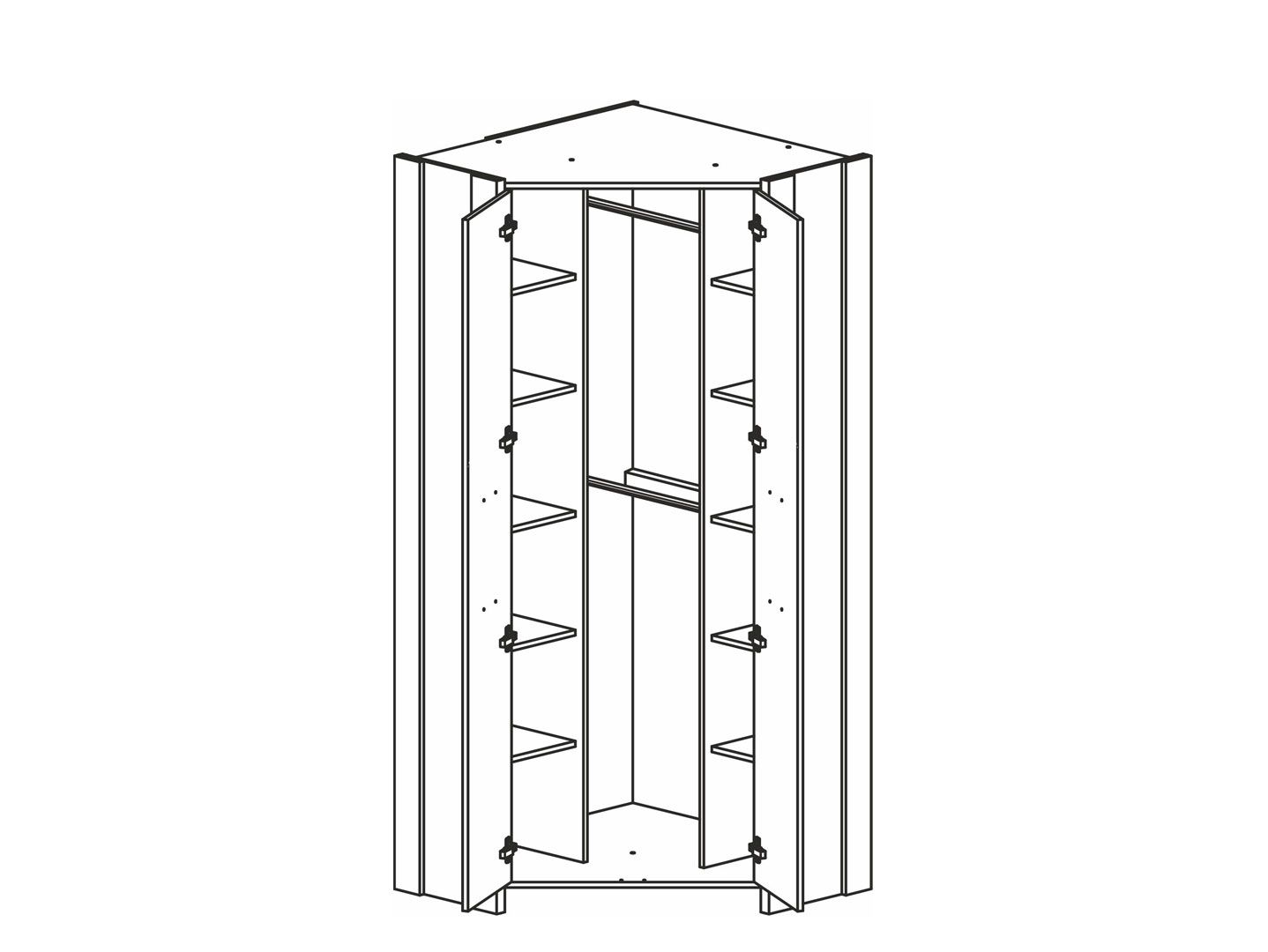 большая вместимость: внутри шкафа 2 отделения с полками и 2 стационарные штанги для одежды