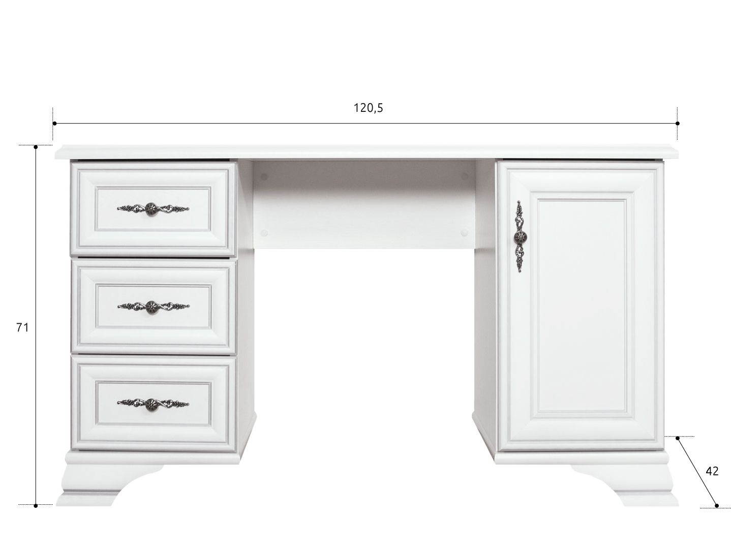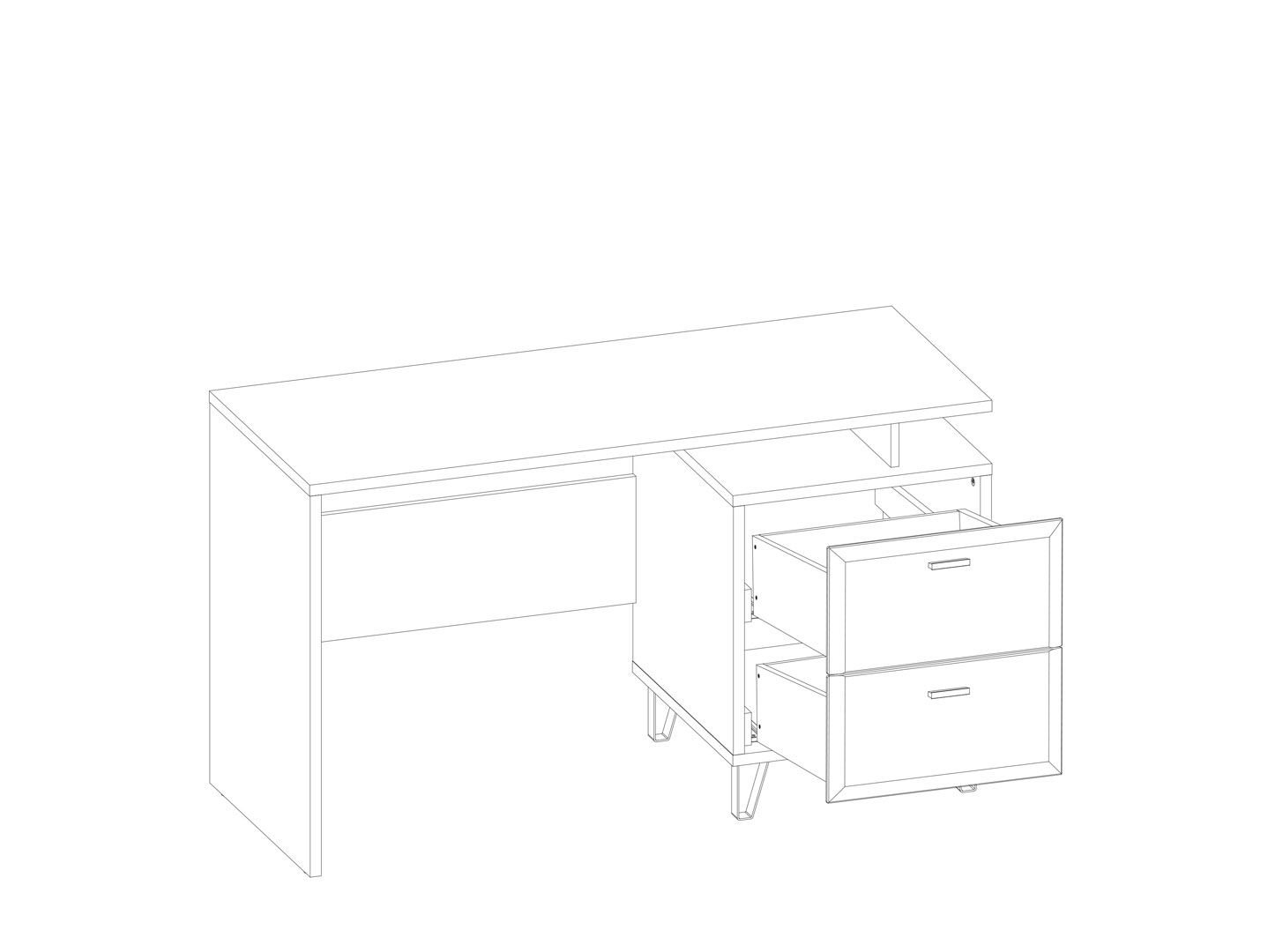 верхний щит стола слегка приподнят над выдвижными ящиками, благодаря чему появляется возможность организовать дополнительные места хранения открытого типа