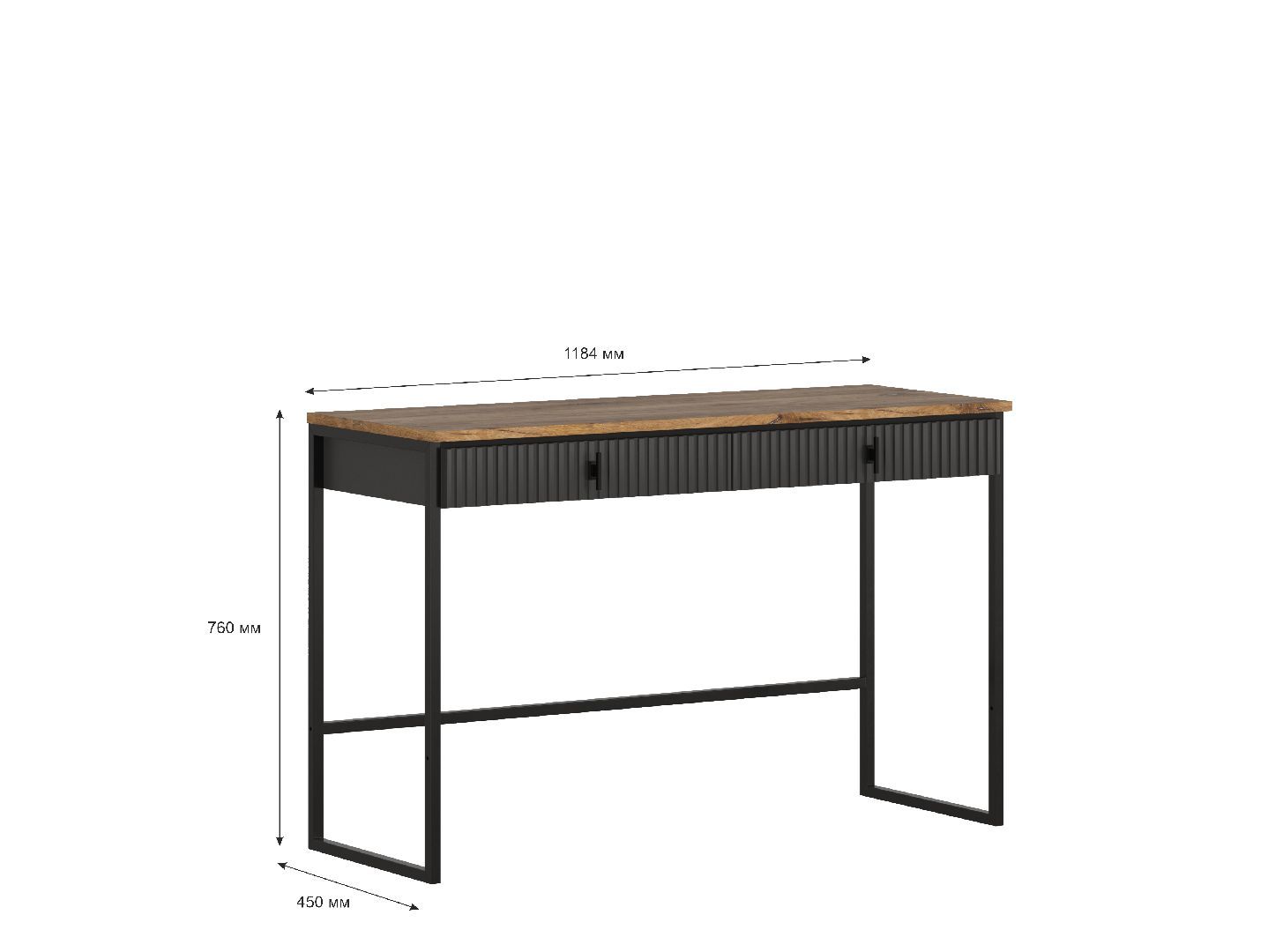 2 выдвижных ящика на шариковых направляющих частичного выдвижения с рифлеными фасадами