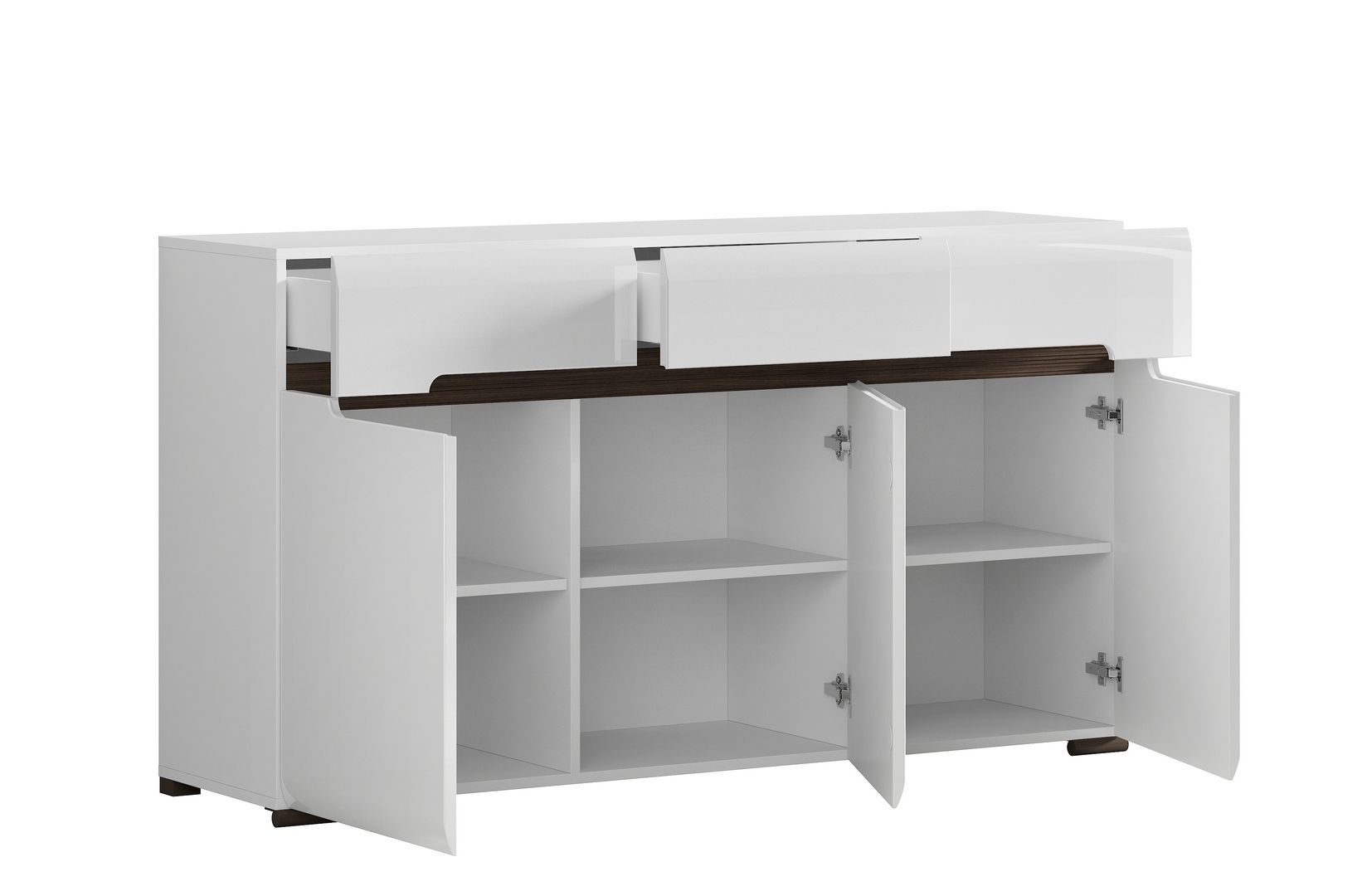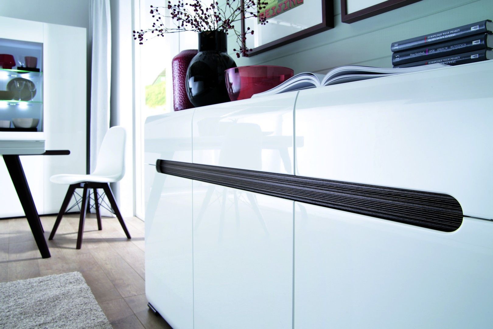 для открывания дверей и ящиков используется фрезеровка на нижней панели ящиков и верхней панели дверей, которая декорирована с внутренней стороны рифленой планкой из плиты МДФ цвет Дуб венге Магия