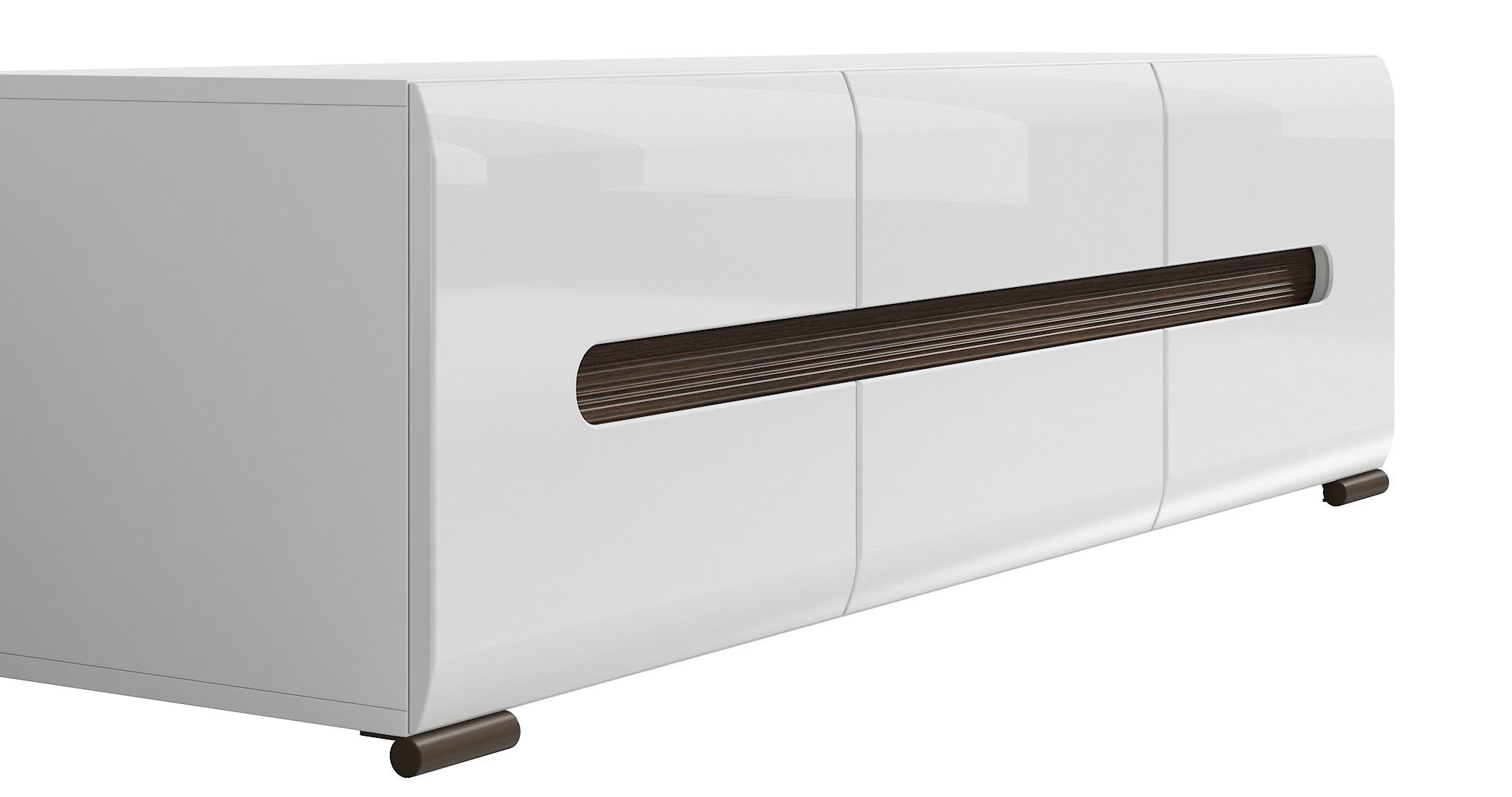 для открывания дверей и ящиков используется фрезеровка на панелях ящиков и дверей, которая декорирована с внутренней стороны рифленой планкой из плиты МДФ цвет Дуб венге Магия