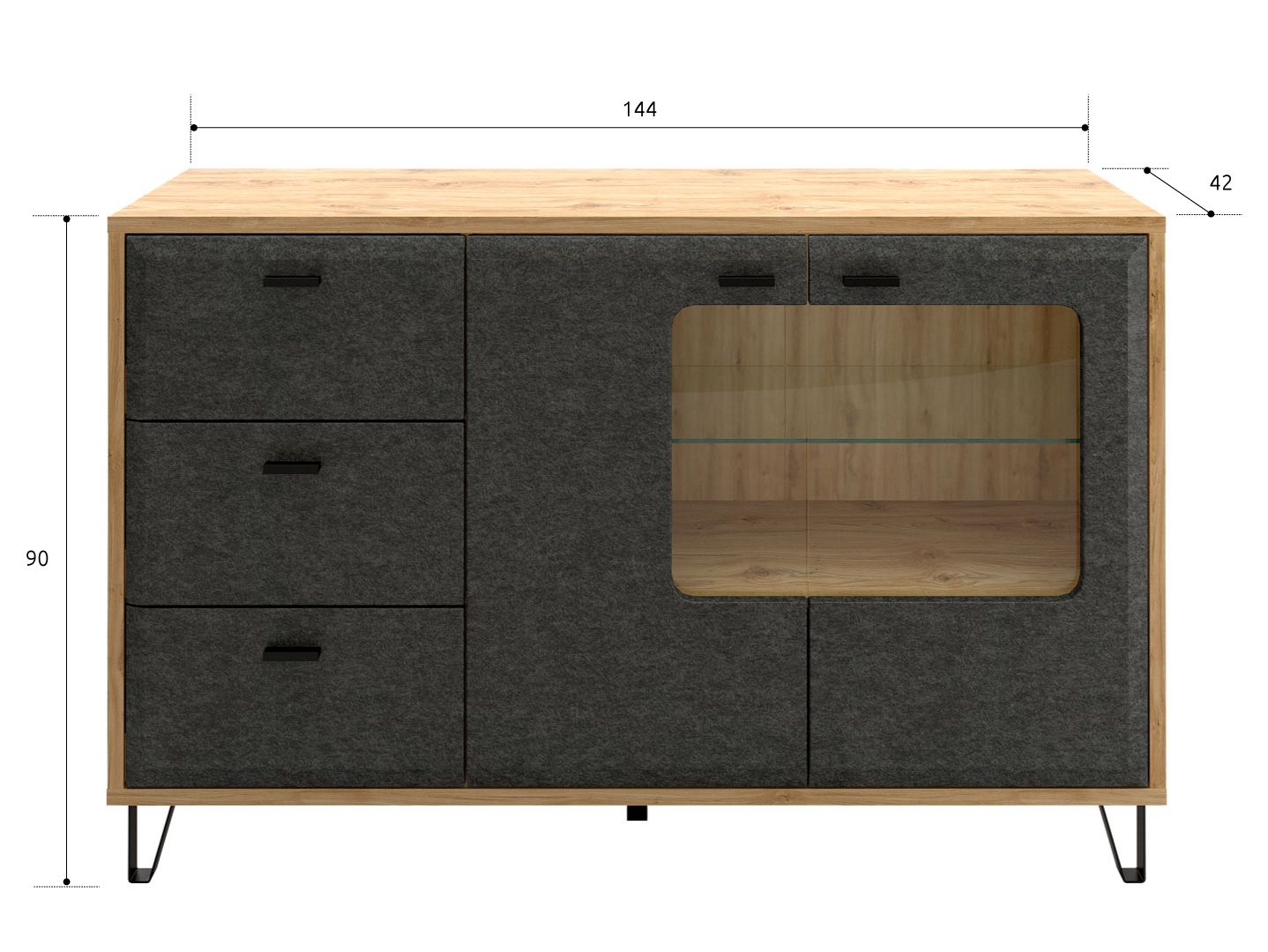 2 распашные двери со стеклом, за которыми расположены 1 стеклянная и 2 стандартные полки