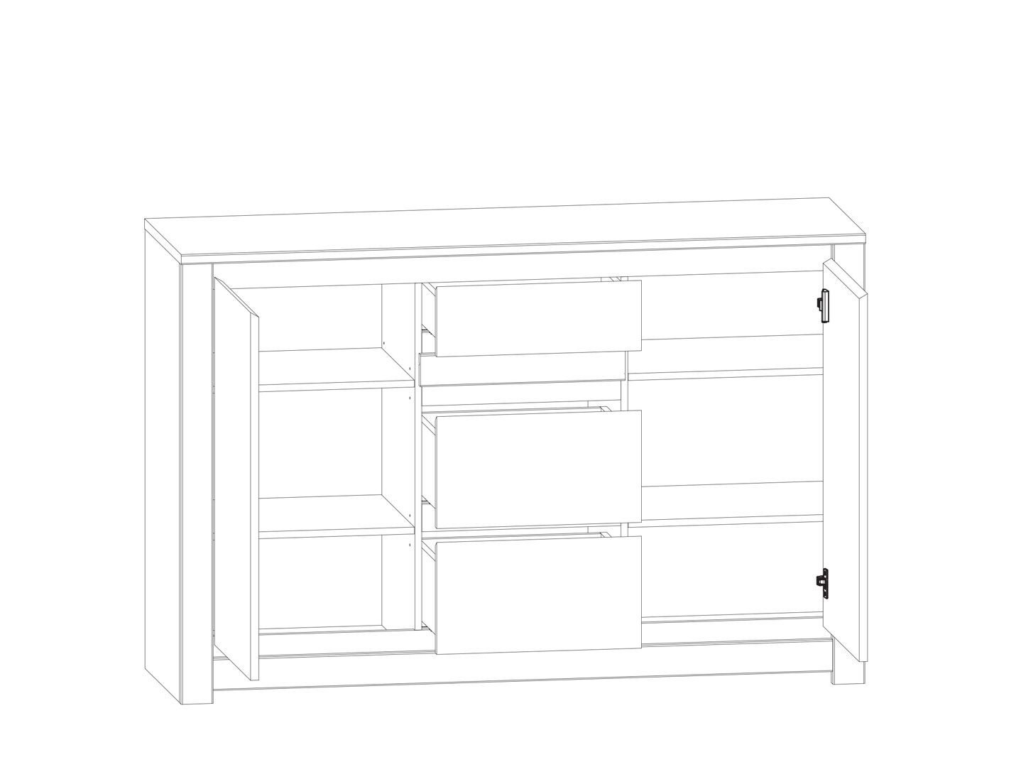 3 выдвижных ящика с системой частичного выдвижения плавного закрытия в центральной части тумбы
