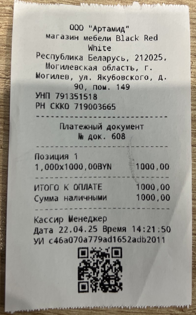- Наличными в пункте выдачи товара (212025, Республика Беларусь, Могилевская область, г. Могилев, ул. Якубовского, 90)