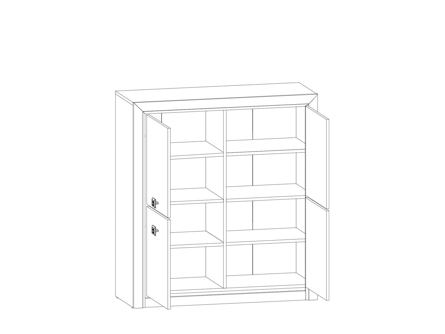 4 распашные двери, за каждой из которых расположено по 2 отделения для хранения
