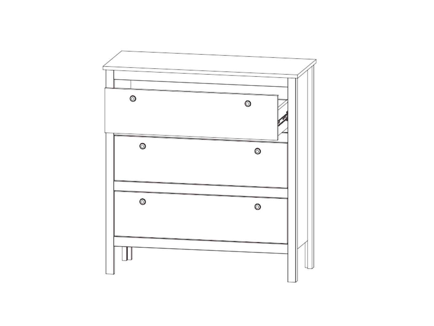 3 выдвижных ящика на металлических шариковых направляющих полного выдвижения