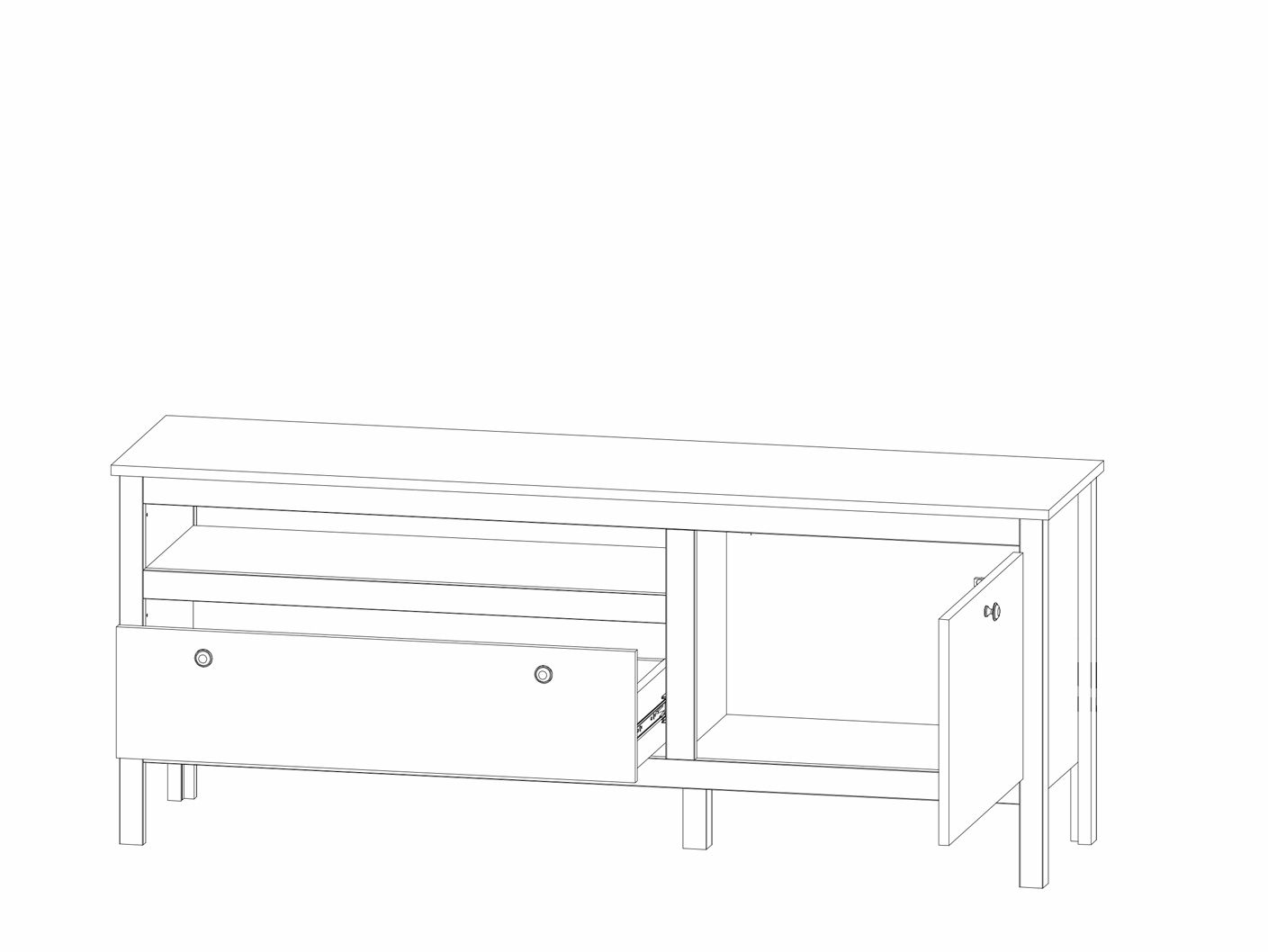 3 отделения: выдвижной ящик на металлических шариковых направляющих, открытая ячейка и отделение за распашной глухой дверью