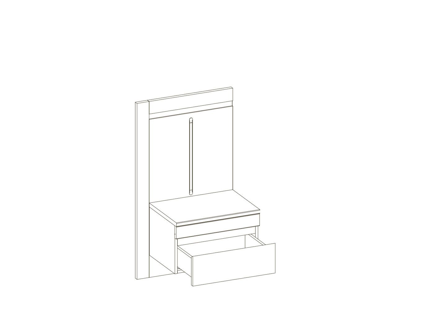 прикроватная тумба крепится к вертикальному щиту, который, в свою очередь, присоединяется к кроватям LOZ160х200, LOZ160х200 с подъемным механизмом и LOZ180х200