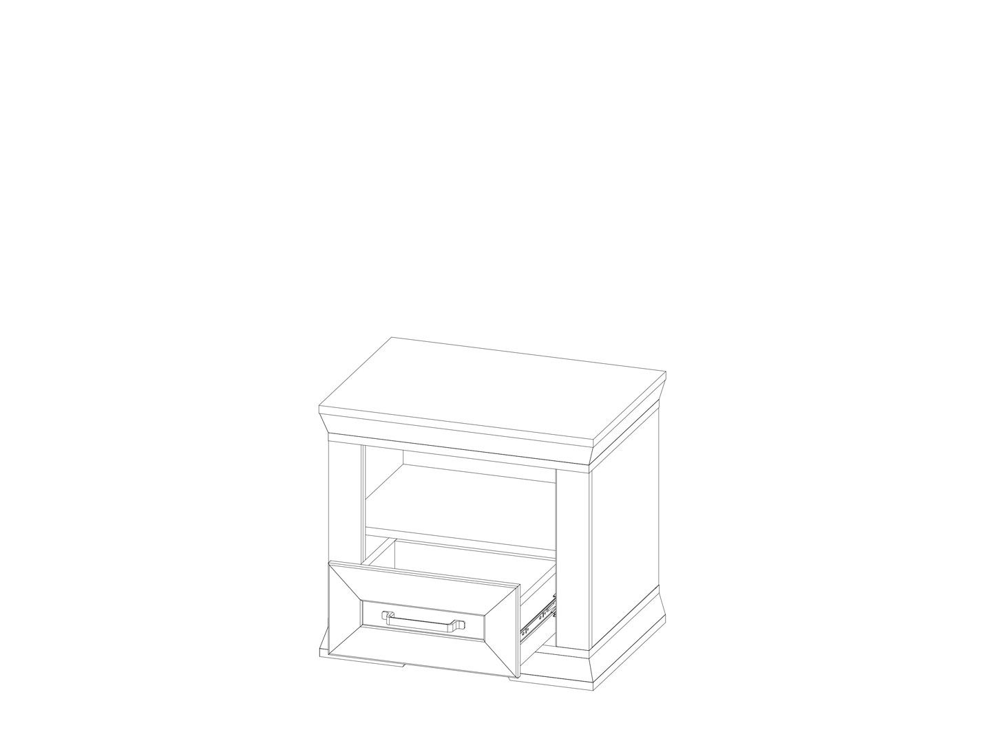 разделена на 2 отделения: открытое отделение и выдвижной ящик на металлических шариковых направляющих