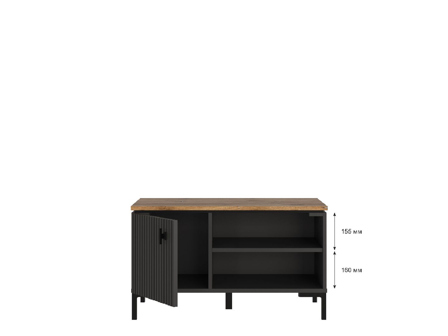 за распашной рифленой дверью расположено большое отделение для хранения