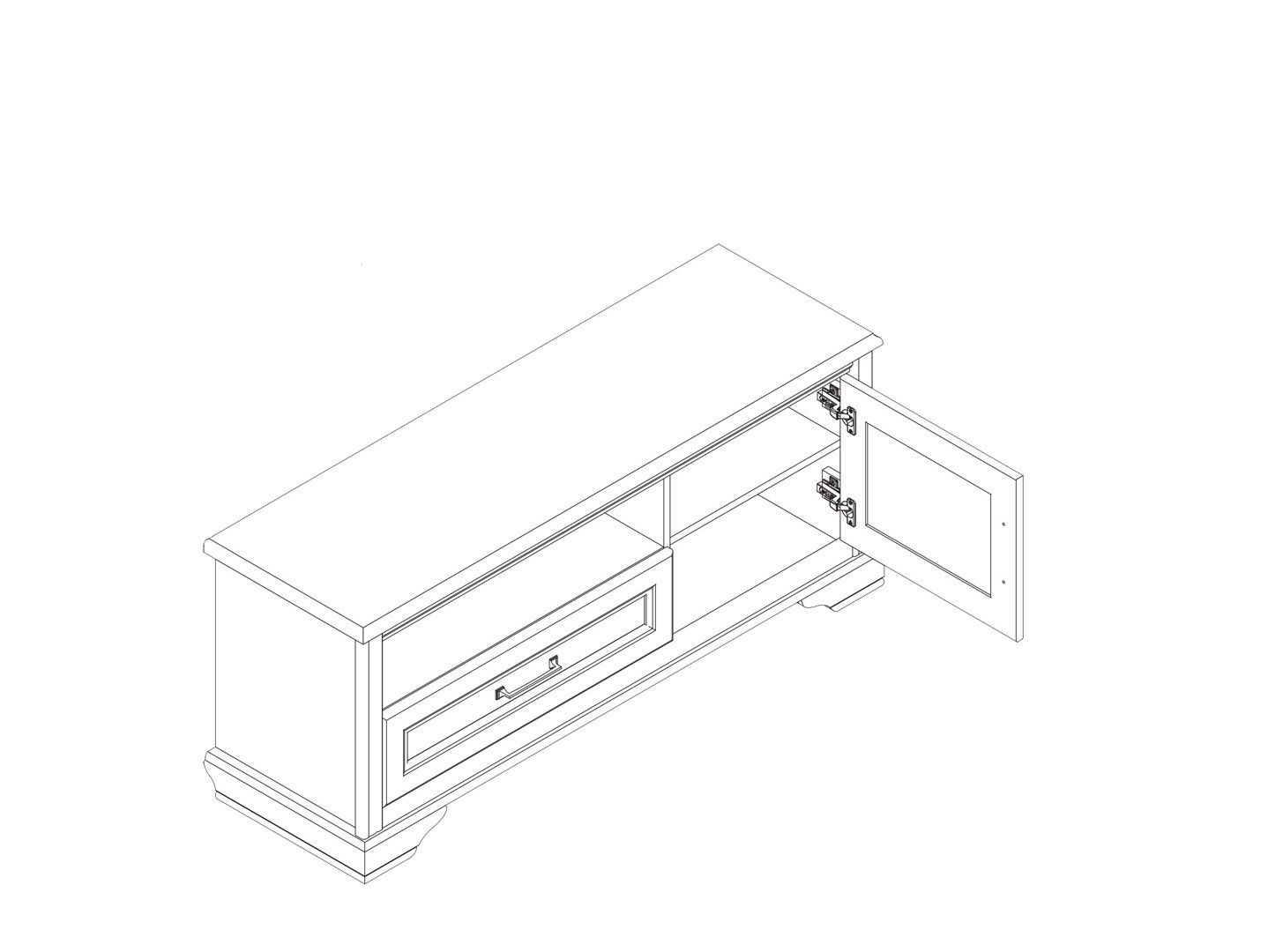 слева — 1 открытое отделение и 1 выдвижной ящик на шариковых направляющих