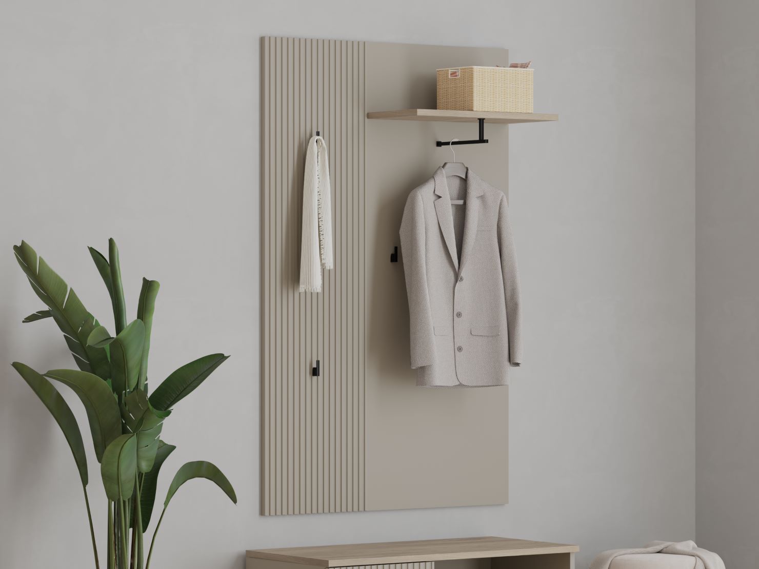 в левой части вешалки — декоративная рифленая вставка